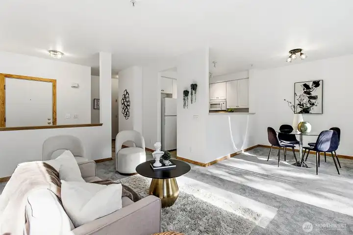 Welcome to this beautifully refreshed one-bedroom, one-bath condo in the highly desirable Maplewood neighborhood at Molasses Creek. Thoughtfully updated with brand-new flooring and fresh paint throughout, this pristine second-floor unit offers a bright, open layout that lives larger than its footprint. The spacious living area flows seamlessly into the dining space and kitchen, creating an inviting environment perfect for everyday living or entertaining. Peaceful greenbelt setting off your deck. Whether you’re a first-time buyer, downsizing, or seeking low-maintenance living, this home offers comfort, convenience, and exceptional value. Residents enjoy access to resort-style amenities including a clubhouse, exercise room, game room, pool, spa, and playground. Perfectly positioned across the street from Maplewood Golf Course and conveniently located near shopping, dining, parks, and easy access to I-405, commuting and everyday errands are effortless. HOA dues include water, sewer, and garbage, making ownership simple and stress-free.