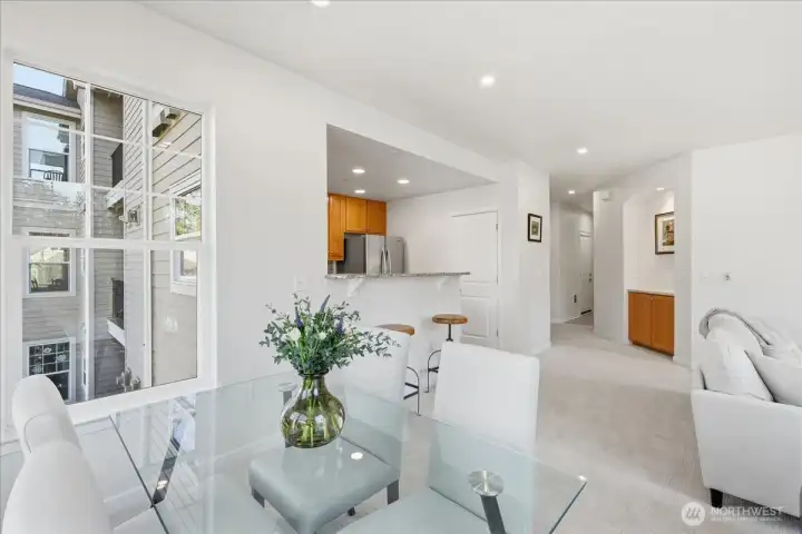 Beautifully updated, light filled 2 bed, 2 bath condo lives like a home with modern finishes, a functional open layout, and easy one level living in the heart of Sammamish. The open living and dining areas extend seamlessly to living room with oversized balcony for entertaining. The thoughtfully designed floor plan offers excellent bedroom separation for privacy. The spacious primary suite includes a large closet and private bath, while the second bedroom with additional balcony and full bath provide flexibility for guests, a home office, or additional living space. Don't miss the walk in pantry off kitchen and the spacious laundry closet. An attached garage and extra storage add rare convenience for condo living. Ideally located near shopping, dining, parks, and major commuter routes, this turnkey home combines comfort, style, and an unbeatable location.