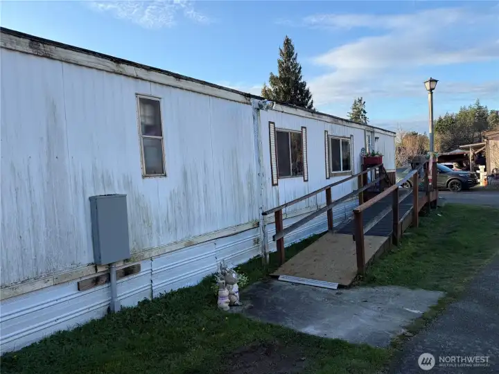 Opportunity awaits in Cherrywood Mobile Manor! This home is being sold AS-IS and is ready for your vision and improvements. Featuring new windows in the living room and kitchen, accessibility ramps on both sides of the home, and a fully fenced lot offering added privacy and space. Covered entry and off-street parking included. Located in a peaceful community with a charming creek running through the park, creating a serene setting. Ideal for investors, flippers, or buyers looking for an affordable project with upside potential. Bring your tools and imagination!