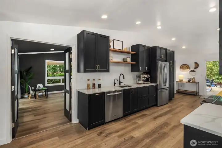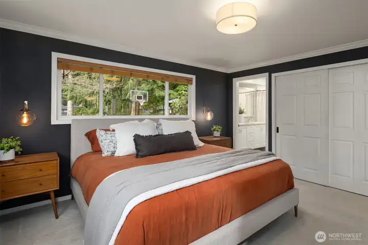 Pristine Sammamish retreat on over 3/4 acre lot! Enjoy the convenience of single level living with the elegance of modern design. Inviting, sunlit interior highlights a spacious family room that opens to the designer chef's kitchen, complete with quartz countertops, subway tile backsplash and stainless appliances. The formal dining and living rooms offer comfort and elegance for entertaining or everyday living. Large bonus room with a vaulted ceiling provides space for media, playroom or lounging. Generous primary with luxurious ensuite bath, complete with heated floors. Three additional bedrooms. Fully fenced yard includes a little something for everyone - play structure, storage shed, fitness room, garden space plus boat or RV parking. Central A/C & generator ensure year-round comfort. Access to top rated Issaquah schools, Beaver Lake Park, nearby shops & dining. A true gem, don't miss it!
