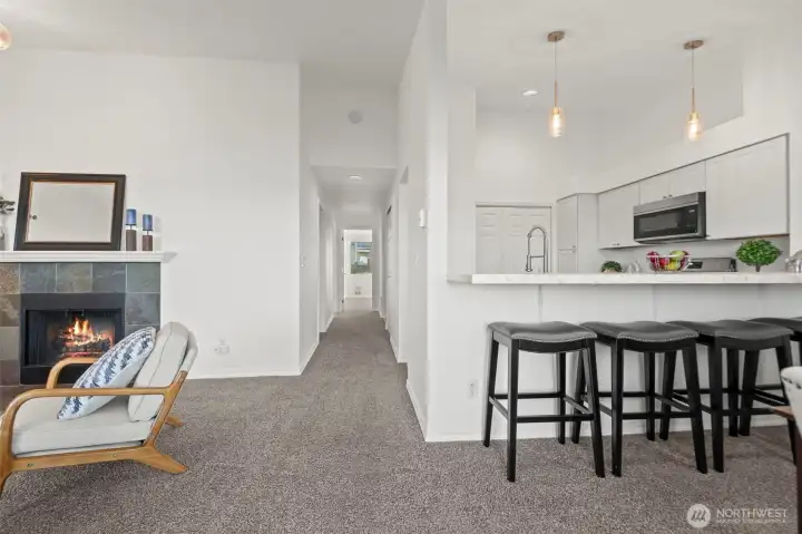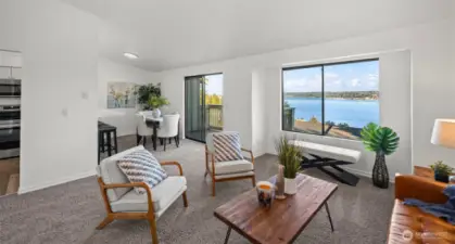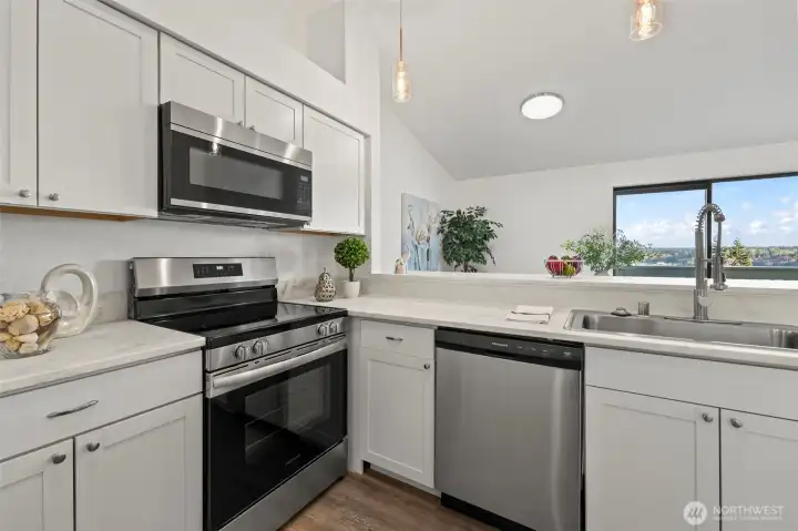 This top-floor Bremerton condo with a beautiful balcony view of Sinclair Inlet and Mt. Rainier has been fully remodeled to provide a clean and inviting living space. The bright kitchen features brand new modern cabinetry, full new breakfast bar and sleek stainless steel appliances, complemented by handsome new flooring and contemporary light fixtures throughout the main living areas. Every room feels refreshed with a crisp, sophisticated paint palette and plush new carpeting in the bedrooms. Practicality is balanced with quality, as the home includes a brand-new water heater and a new washer and dryer set. This polished, turn-key property provides a seamless move-in experience, combining essential modern upgrades with a comfortable, well-maintained atmosphere. From the updated surfaces to the new appliances, every detail has been handled to ensure this home is both functional and stylish for its next owner.