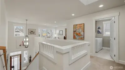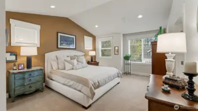 Impeccably maintained home in Lower Kennydale’s coveted Clover Creek neighborhood, offering Lake Washington views & enduring craftsmanship throughout. This 3-BR, 2.5-bath home spans 2,570 sq ft and blends warmth, refinement, & thoughtful design. New pre-finished hardwood floors anchor the living spaces, while the reimagined family room features custom built-ins, upgraded fireplace, art-display TV, & integrated wine storage—creating a refined yet inviting gathering space. The chef’s kitchen is both elegant & functional w/ premium cabinetry, luxurious countertops, and stainless style appliances. A versatile loft retreat & covered upper-level view deck provide ideal spaces for work, quiet relaxation, or taking in Lake Washington, city lights, & sunset views. The primary suite is a private sanctuary featuring a freestanding soaking tub, zero-lip walk-in shower, and spa-inspired finishes. Comfort and technology upgrades include EV charger, whole-house speaker system, central vacuum, upgraded hardwiring for a home office, custom blinds, skylights, upgraded lighting with dimmers, and a new furnace and A/C. Outdoor entertaining is elevated by a serene, resort-style backyard w/ entertainment patio, flagstone path, garden shed, plant-trellis, turf lawn, irrigation system, & ambient lighting —an inviting setting for both intimate evenings and larger gatherings. A rare turnkey opportunity in one of Lower Kennydale’s most desirable lake-adjacent communities. See today!