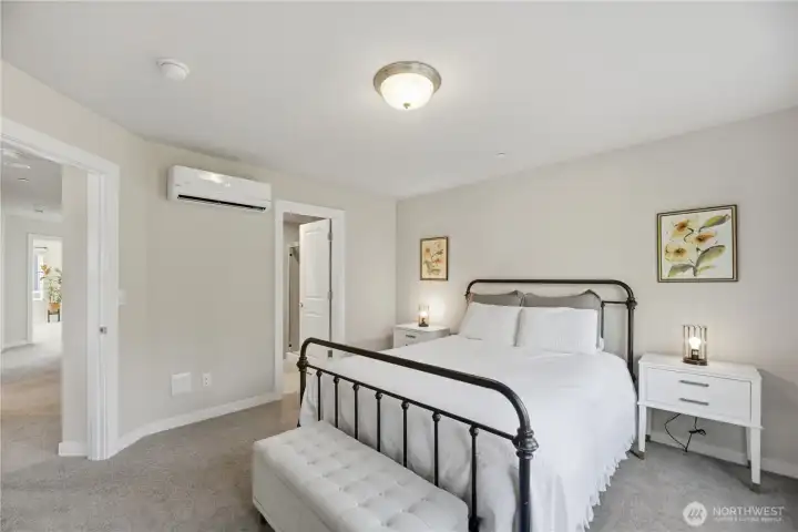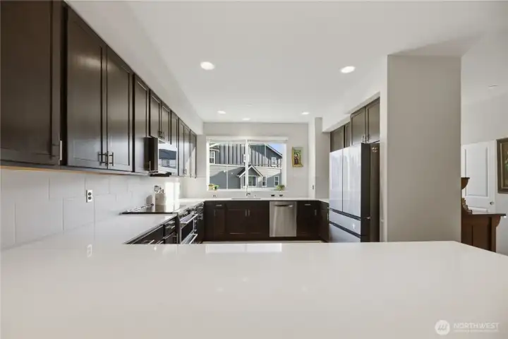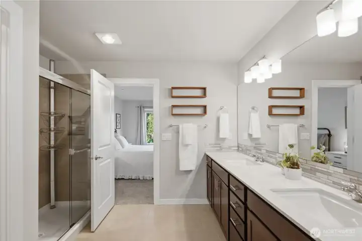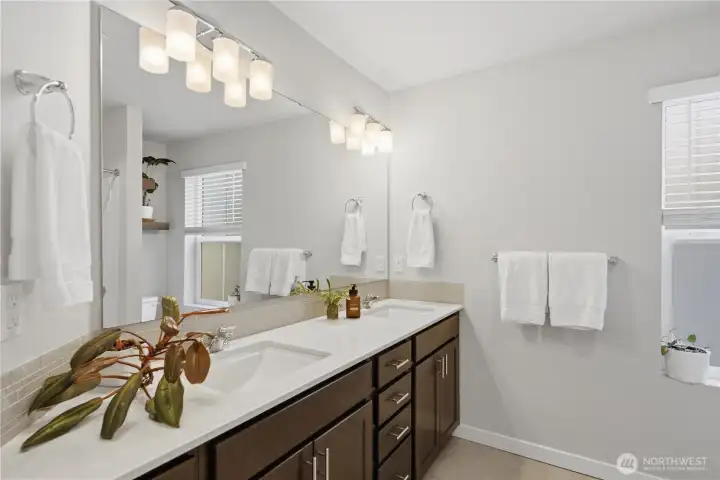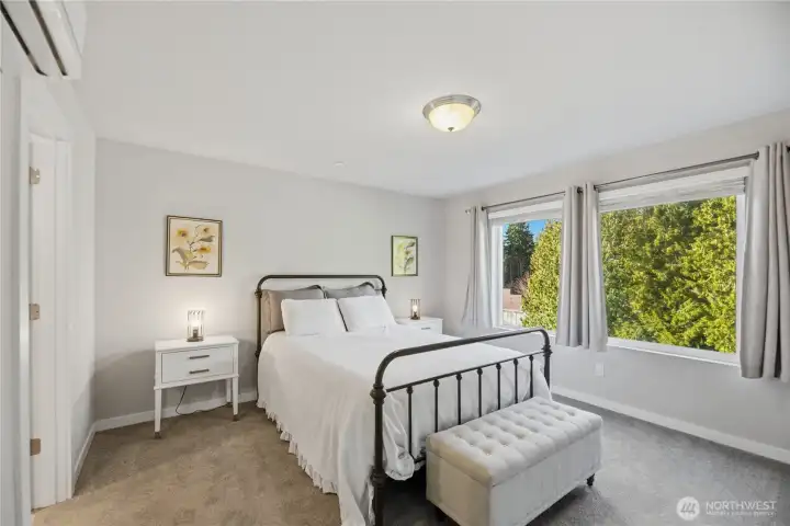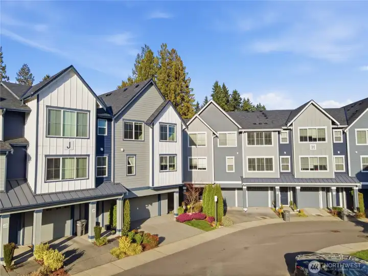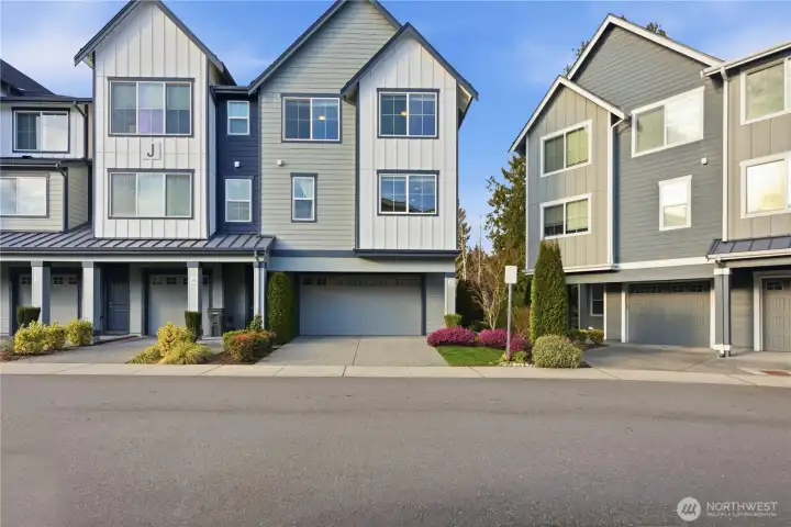 Discover one of the most desirable and rarely available floorplans in the Ponds community. This sun-filled corner residence offers 4 bedrooms, 3.25 baths, and 2,539 sq ft of beautifully updated living space—combining flexibility, function, and thoughtful upgrades throughout. Fresh interior paint, brand-new Shaw carpet with premium pad, and durable luxury vinyl plank flooring create a crisp, modern feel. The entry level features a private bedroom with custom Murphy bed, and full bath — ideal for guests, multi-generational living, or a dedicated office setup. Main living level is designed for both comfort and entertaining. Open-concept kitchen features newer appliances, quartz countertops, induction cooktop, pantry, and an oversized island that flows seamlessly into the dining area and spacious great room. Abundant windows frame peaceful greenspace views and fill the home with natural light. Primary suite offers a serene retreat, Elfa closet systems maximize organization, and spacious bathroom. Outdoor living truly sets this home apart. Enjoy a stunning side and backyard retreat w/ custom flagstone pavers, curated plantings, and tranquil greenspace views — a rare and private setting within the community. Over 70k in seller upgrades! Additional features: Oversized 2-car garage w/ EV charger, Large-capacity hot water tank, No rental cap Located just moments from scenic trails, the pond, and less than a mile to Mill Creek Town Center with convenient access to I-5 and I-405.