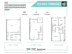 Vita Nova Townhomes in Shorewood showcases collaboration, creativity & craftsmanship. Developed by American Dream Home Group & built by TP Home, this 43-townhomes community blends modern comfort, timeless design & everyday function. Each home offers 3-4 Beds, 2.5 Baths, approx. 1,626 to 1,977 SqFt, 2-Car Garage, covered deck. Interiors feature porcelain tile, durable LVP, quartz counters & custom cabinets. Innovative layouts maximize light, storage & overall flow. Community amenities include an upcoming private playground + gazebo w/benches, 5 guest parking + handicap spot. Minutes to Fauntleroy Ferry & Lincoln Park, & est. 15 min drive to SeaTac Airport & Westfield Southcenter. GPS: 1630 SW 116th St, Burien. 1-Yr Home Warranty provided.