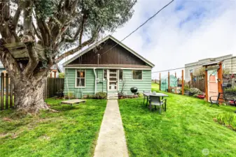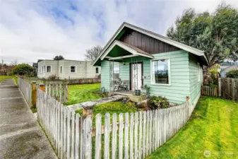 Welcome to this charming bungalow in the heart of Port Angeles, perfectly located near the hospital, walking distance to the Discovery Trail that leads to downtown. There are 988 sq ft of updated living space, this 2-bedroom, 1- bath home blends cozy comfort with unforgettable scenery. Enjoy in your face unobstructed water views of the straits, stunning views of Mt. Baker and even passing ships and occasionally orcas from the bay! Home features updated electrical, plumbing, living area flooring and windows. Living area has a cleverly designed slide room divider that can be moved to block off for a private office/or separate living room area. Step outside to a fully fenced front and backyard oasis designed for both relaxation and productivity. Gardner's will fall in love with the raised beds, established blueberries an raspberries, spiral herb garden and a majestic eucalyptus tree adding character and shade. Need space for toys or projects? The detached 700 sq ft shop includes a 3/4 bath and is complemented by a 700 sq ft covered carport, RV parking and RV hookups w/dump. This rare in-town gem offers lifestyle, location and views that are hard to match.