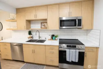 Beautifully remodeled townhouse nestled in a peaceful Everett neighborhood with convenient access to I-5 and nearby shopping. This thoughtfully updated home features brand-new kitchen appliances, fresh carpeting, and a stunning kitchen showcasing custom White Oak cabinetry, quartz countertops, and a tiled backsplash. Enjoy a spacious, fully fenced yard with an oversized 20x9 deck — perfect for entertaining. Additional highlights include interior and exterior storage, one covered carport, one uncovered parking space, and complimentary on-site storage for recreational vehicles.