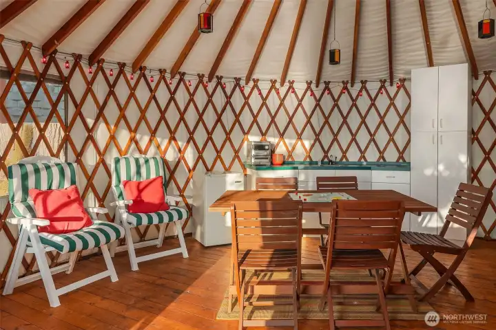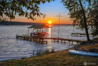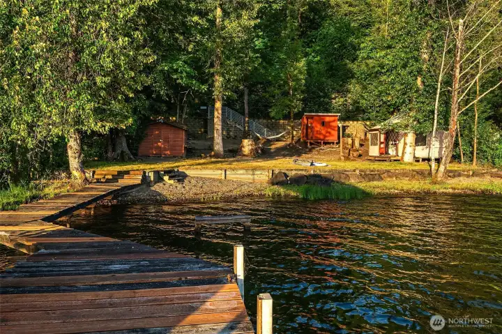 The most iconic yurt on the sunshine coast of Lake Sammamish is now available to start creating lifelong memories for generations to come! Relish 100' of no bank waterfront, a nice flat grassy yard, 2 docks, 2 Sunstream boat lifts, an inviting shower & sauna cabana + storage shed. The star of the show is the lakefront yurt with hard floors, canvas windows & enjoys fresh air and sunshine year round. Summertime, enjoy waterskiing, boating, swimming, fishing, campfires, picnics and entertaining. In the winter, a brisk polar bear plunge into the lake followed by a much deserved sauna by the shore. It's an easy stroll down the E Lake Sammamish trail to access the property and yurt. Rec lot=not buildable.