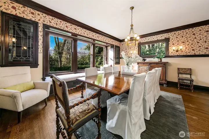 Graciously set in Capitol Hill’s storied Harvard-Belmont enclave, this grand 1906 Craftsman is both legacy estate and enduring residence. Set on an extraordinary 15,000-square-foot lot, it reflects an era when Seattle’s leading citizens built with vision, permanence, and artistry. Spanning three finished levels above grade, the home balances historic integrity with thoughtful modernization. Public rooms unfold in measured succession ~ formal, yet unforced. Original millwork, generous proportions, and divided-light windows define the interiors and affirm the home’s architectural pedigree, complemented by carefully integrated updates that support contemporary living. A JAS–renovated kitchen introduces refined precision, aligned with the structure’s historic material language. A light-filled two-story stairwell rises to a broad second-floor landing, leading to additional bedrooms, baths, and a private office. Along the north elevation, the primary suite spans east to west across three rooms and a full bath, capturing steady daylight and maintaining separation from the principal gathering spaces. The top level reveals an expansive former gymnasium reimagined as a family room, accompanied by guest quarters, a full bath, and storage. Elevated above the street, the expansive, mature grounds and layered plantings provide rare privacy and quiet command—an estate-scale presence seldom found within the city.