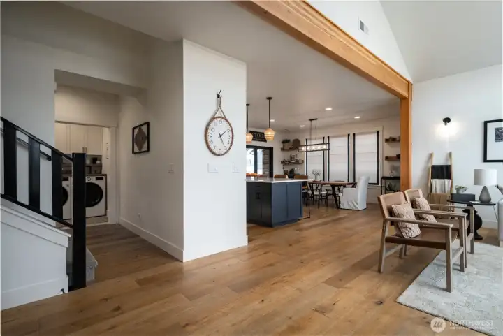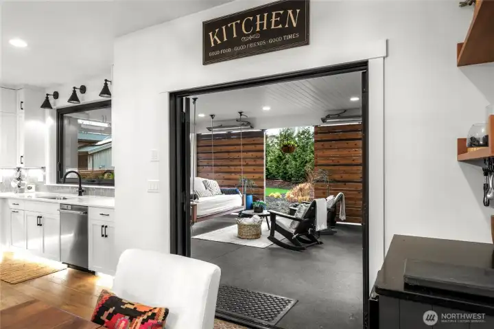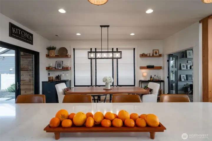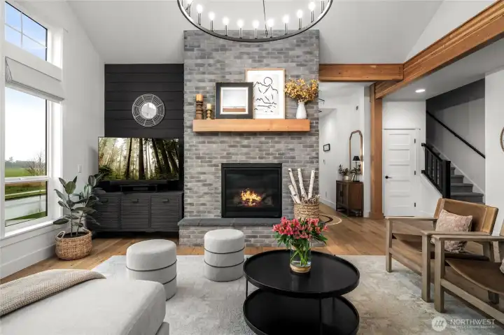 1594 Farmview Terrace is a beautifully designed custom home, thoughtfully maintained and ideally located on the outskirts of Lynden. This inviting property offers 4 bedrooms and 2.5 baths, along with a recreational room and dedicated den/office, providing flexible space for everyday living, work, and entertaining. Vaulted ceilings and abundant natural light create an airy, welcoming atmosphere throughout the main living area, centered around a spacious chef’s kitchen. The kitchen features an ActivWall that opens to the covered back patio, creating a seamless indoor-outdoor living experience perfect for gatherings or relaxing evenings at home. The property includes a two-car garage, parking pad, and recently upgraded driveway, offering ample space for vehicles and guests. The fully fenced backyard is nicely landscaped and designed for comfortable outdoor living. Situated on .34 of an acre, the property also offers room to expand with potential for a future ADU or shop. Recent improvements to the front landscaping further enhance the home’s curb appeal and long-term value, reflecting the care and pride of ownership throughout.