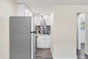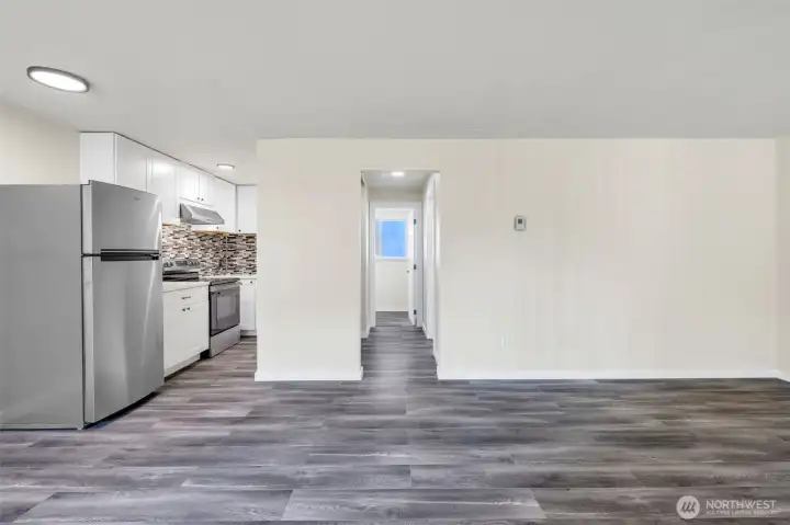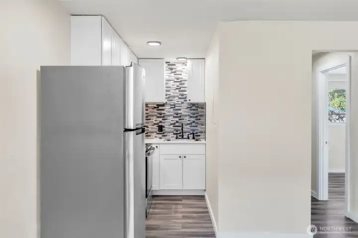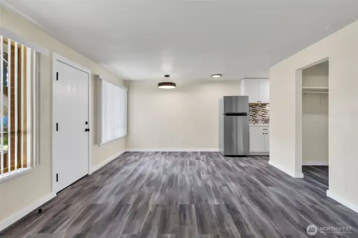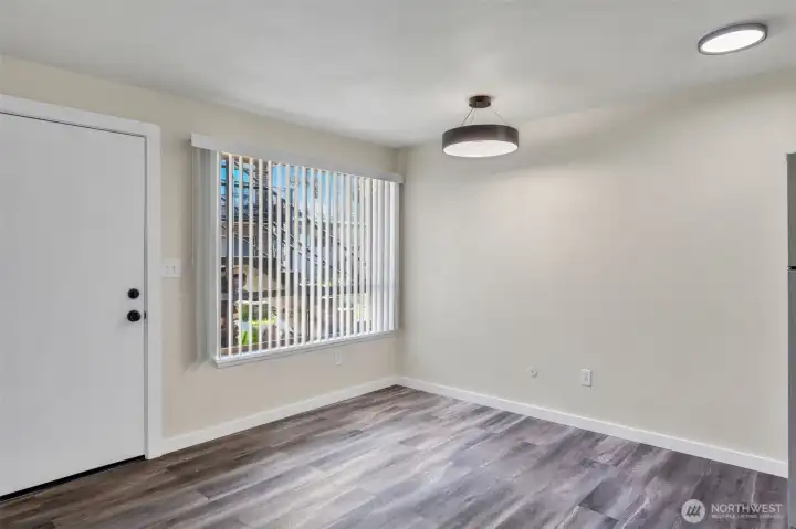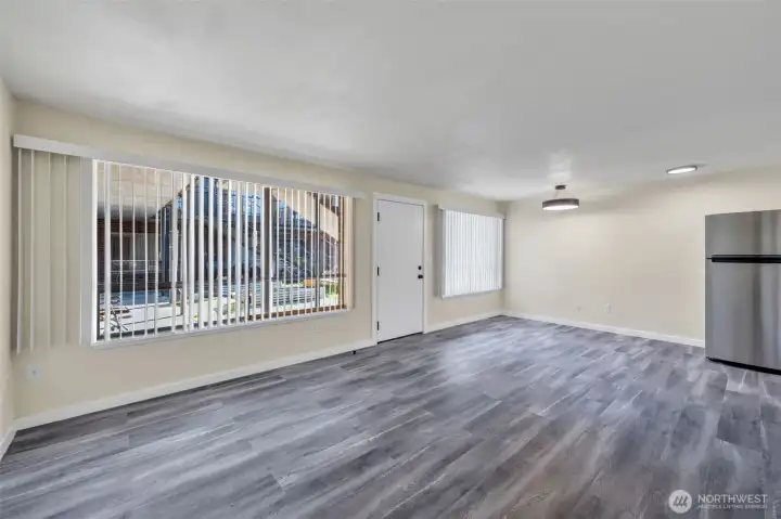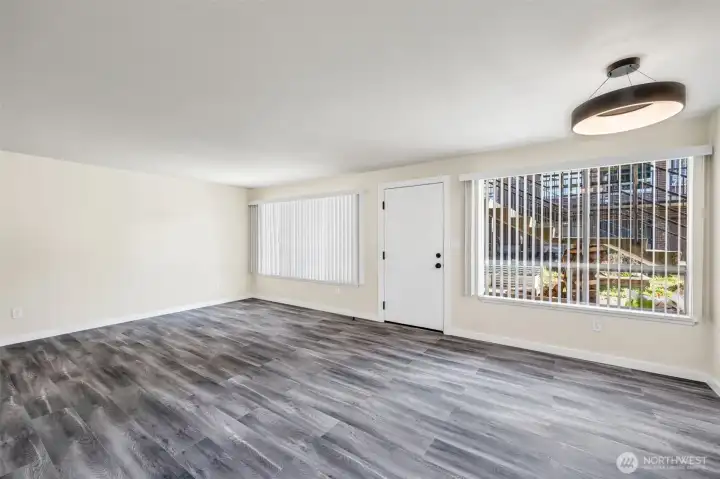 This is a transforming condo complex. A number of the units will be remodeled and updated, ready for sale. This unit has just been completely remodeled: one bedroom, one full bath, ground-floor unit with no steps. 1st floor has so much to offer with lots of natural light. New laminate flooring throughout, new doors, trim, new lighting fixtures, and paint. The open kitchen has new cabinets, a new stove and refrigerator, and beautiful granite countertops. The bathroom has new flooring, a new tub surround, and a vanity with a granite counter. Make this a must-see on your list. Just a short commute to downtown Seattle.