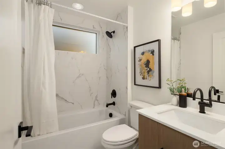 Ashworth Homes presents Union Park, a distinctive new community nestled in the heart of historic Wallingford. This spacious floor plan lives large! Entry level includes bedroom, flex bonus room & office + full bath - ideal for separate work & living areas for the whole household. Heart of the home on the second level includes stunning kitchen, living & dining + powder bath. Top floor hosts 3 beds, including primary suite with views. See the spectacular panorama from your rooftop deck! Blocks to extensive dining, coffee & boutiques. Recreation abounds with proximity to Green Lake, Burke-Gilman Trail & Gasworks Park. Plus, moments to UW & Fremont tech & outdoor industry employers, with north-south corridor access for effortless Sound travel.