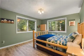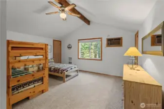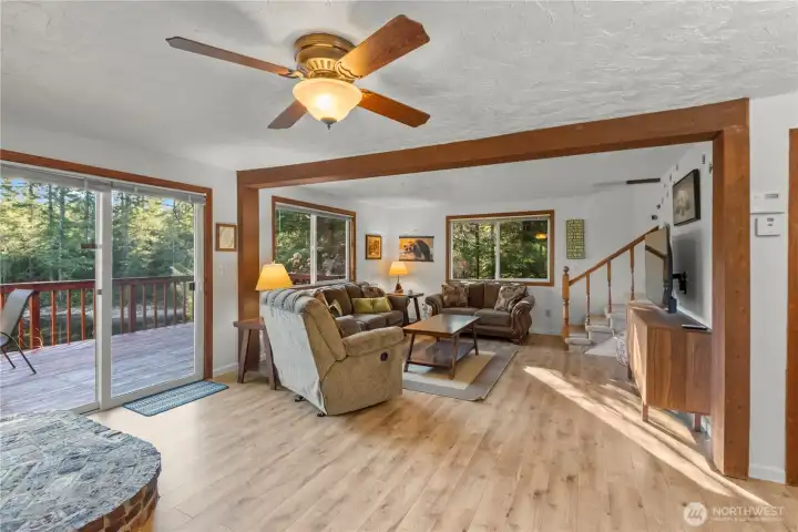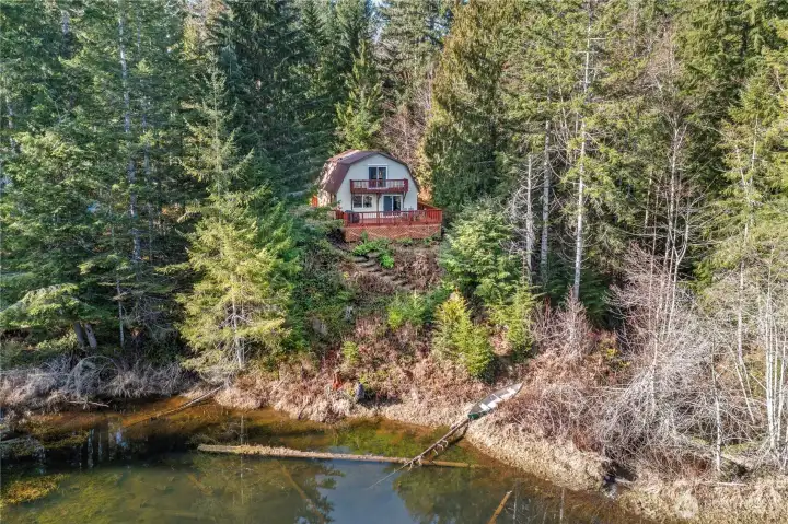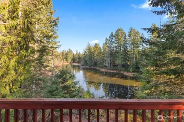 Nestled among the trees on a rare oversized .61-acre parcel, this Mt. Rose Village retreat offers exceptional privacy and peaceful views overlooking one of Lake Cushman’s secluded ponds — a unique feature rarely found in the community. The property is bordered by community greenspace, preserving the tranquil surroundings and sense of space. Inside, the home is designed for comfort and connection. The spacious kitchen features a breakfast nook and separate dining area, flowing seamlessly into the main living space — ideal for everyday living or entertaining. Large windows bring in natural light and frame serene forest and pond views. Outdoor living shines with an expansive wraparound deck, perfect for relaxing and enjoying the peaceful setting, accentuated by the soothing sound of flowing water below. The main level offers a spacious bedroom and full bathroom, while upstairs features two oversized rooms and a 3/4 bath, providing flexible space for guests, hobbies, or work-from-home needs - complete with high-speed fiber internet. A paved driveway offers ample parking, including a lower RV area with water and 50-amp power, plus a permitted RV septic holding system ready for installation. The detached garage fits up to three vehicles and includes a workshop and large storage loft. Currently operating as a successful Airbnb, this property offers both a peaceful retreat and strong investment potential — just a short walk to the Cushman Div 3 park, boat launches, and recreation.