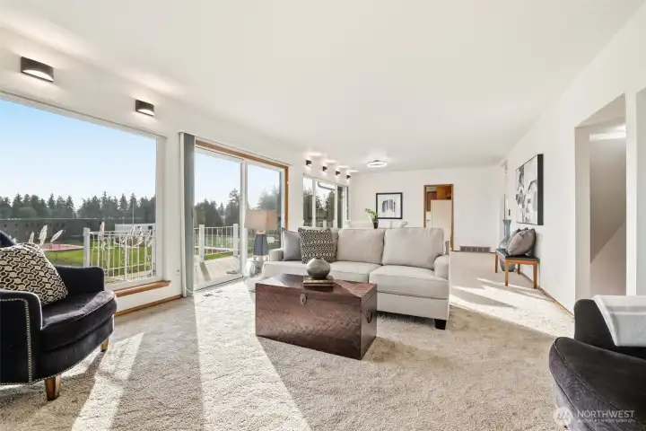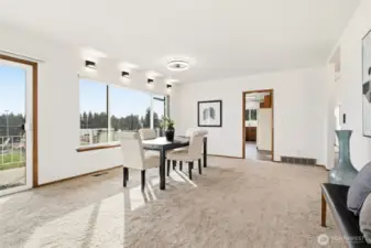Perfectly tucked away at the end of a long private drive, this spacious home offers flexibility, comfort, and stunning views of Mount Rainier. The upper level and expansive entertainment-ready decks capture sweeping mountain vistas, creating the perfect backdrop for gatherings or quiet evenings at home. Designed with versatility in mind, the layout is ideal for multi-generational living or duplex-style use, with full kitchens on both levels. Fresh interior paint, new carpet throughout, new LV flooring and beautifully updated bathroom finishes make this home truly move-in ready. The private primary suite enjoys its own level, complete with an ensuite bath and secluded view deck. Conveniently located just minutes to I-5, with easy access to the airport and downtown, this lovingly maintained one-owner home offers space, flexibility, and an unbeatable setting. Come experience it for yourself!