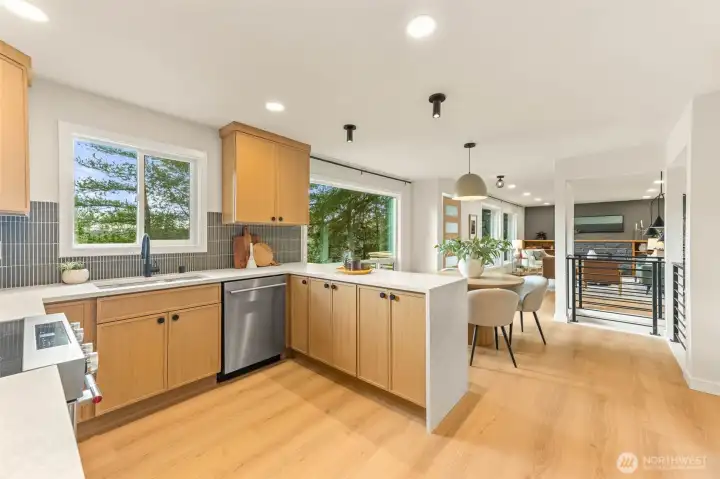 Set on nearly 10,000 square feet of freshly manicured landscape—a rare find in the heart of Wedgwood! This thoughtfully updated home blends timeless character with modern livability. A storybook brick pathway leads to an elevated entry, offering both privacy and commanding presence. Light-filled interiors highlight original built-ins and a cozy fireplace, while the open dining area flows seamlessly into a stunning new kitchen with sleek cabinetry, quartz counters, rich tile backsplash and easy access to the covered patio for seamless indoor-outdoor living. The main-level primary suite features a chic 3/4 bath and custom walk-in closet, complemented by a second bedroom and stylish full bath. Downstairs offers exceptional flexibility with a spacious bonus room with fireplace, two additional bedrooms, full bath, and generous laundry. The outdoor spaces truly set this home apart. An expansive patio, built-in BBQ area with shed roof, and level yard offer exceptional room to entertain, garden, or simply unwind - rarely found in this location. Extensive upgrades include new electrical, plumbing, roof, windows and more, offering peace of mind and long-term value. Moments to parks, the community garden, UW, light rail, and neighborhood favorites—this is Wedgwood living at its best.
