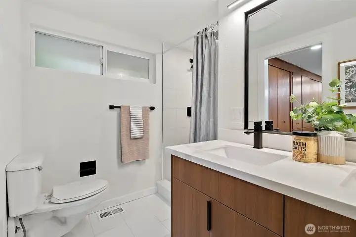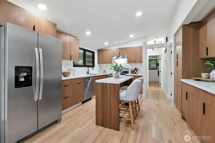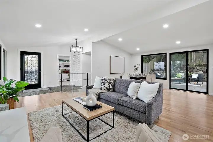 Don't miss out on this move in ready NW style home perched above the street with tons of privacy and a great sound view! Hardwoods are the real deal and have been refinished with a brand new kitchen, appliances, lighting and more! Bathrooms have custom tile work with new cabinets and quartz countertops! Fantastic open concept layout with vaulted ceilings and cozy electric fireplace! Extra large family room below with a fully remodeled half bath. Efficient heating with a heat pump and a/c to keep you cool in the summer! Back yard has just been filled with new topsoil and seed to bring you new grass in the spring (please try not to walk on), and a new roof to top it off! Welcome home!