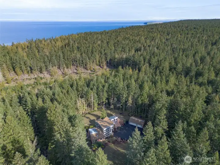 Should be on a magazine cover! You could travel the world and find little to compare with the peace and tranquility of this lovely spot. Custom home in Sequim Bay Acres in Panorama Vista on 5 private acres. This contemporary home has it all! 3900 square feet of living space with 4 bedrooms and 3 full bathrooms. When you open the door, you walk into an entertainers delight with a living room with a propane fireplace and built-ins. The chef's kitchen has a island with an induction cook top, a peninsula with bar stools, a Frigidaire professional series refrigerator and subzero freezer, wall oven & micro, an appliance garage, & large walk-in pantry. Off the kitchen is a formal dining room overlooking a large atrium with a hot tub & Koi pond. The primary bedroom has a propane fireplace, a large walk-in closet with built-ins, adjoining exercise room, and an en-suite with an oversized shower, double sinks, and separate toilet. There are 2 additional bedrooms on this end of the house with a full bathroom. Up the spiral staircase is an bonus area with built-ins. As you walk thru the atrium there is another office / entertaining space. The fourth bedroom is located off the living room with another full bathroom. A key feature of the home is a sound-proof theater with red leather seating. There are two heat pumps and five different zones for heat and three separate hot water heaters. The three car garage has 888 square feet for your cars and additional storage. Come see!