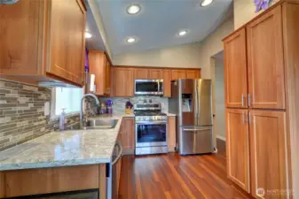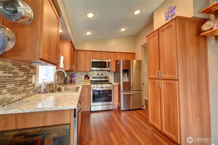 Here it is! Don't miss this well-Maintained Rambler Completely updated from the Roof down! Vaulted Living with Plant Shelf, Laminate Floors in all traffic areas, Updated Kitchen Cabinets, Granite Counters, High End SS Appliances with Gas Range and Eating Area that opens out to the Beautifully Fenced & Landscaped Backyard including Irrigation, Custom Pavered Patio, Lighted Covered Awning and Fire Pit perfect for outdoor living. Primary Suite with Full Bath, New White Millwork package thru-out including doors and all trim. Exterior Improvements Include Newer Roof, Exterior Paint, 93% Efficient Gas Furnace w/ Electronic Air Filter, Hot Water Tank, Heat Pump w/ AC with ECOB Thermostat. This one has it all, move in ready! Minutes to Shopping, Parks, I-5 and all Amenities!