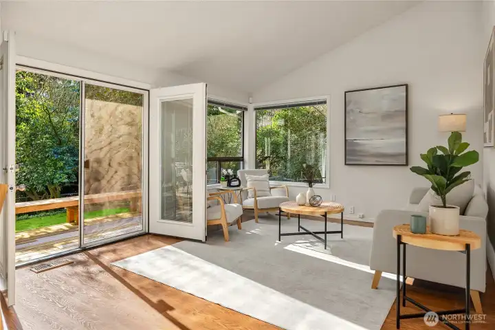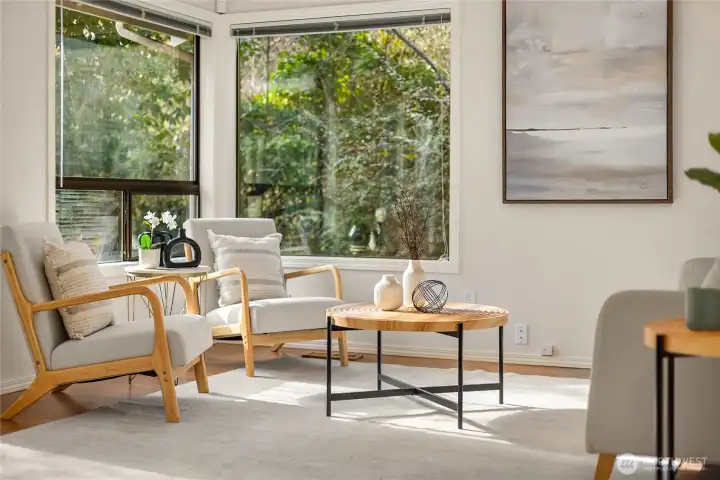 Charming single-story home on a sunny lot in the south-end Emerald Heights neighborhood. Phenomenal floor plan features kitchen with bar seating that flows to spacious family room with French doors to covered deck. The living and dining rooms are also generously sized and are graced with large windows for generous natural light. The bedroom wing of the home has a primary bedroom with great closet space and an ensuite bathroom. Two additional bedrooms plus a full bathroom round out the fantastic layout. Sited on a sunny, corner lot with a circular driveway and a fenced back yard. Just a half mile from shops, restaurants, and movie theater and additional amenities at Lynwood Center and Pleasant Beach Village. For outdoor enthusiasts, the property is not too far from trails at Gazzam Lake, Schel Chelb Park and Fort Ward Park with 4,300 feet of shoreline.