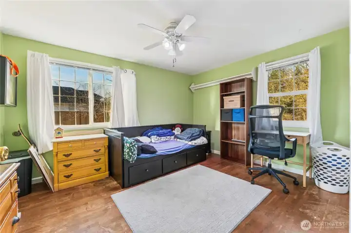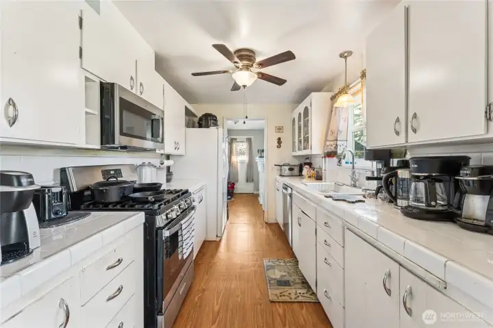 Charming one-story 4BR, 1.5BA home on a generous 1/3-acre lot in the heart of historic DuPont, directly across from the greenbelt! Enjoy peaceful greenbelt views from most windows and a light-filled interior with an oversized picture window, cozy gas fireplace in the living room, and built-in shelving in the dining area. The spacious layout offers comfortable living with defined living and dining spaces, a functional kitchen, and dedicated laundry area. Step outside to a covered patio and fully fenced yard with room to garden, play, or entertain. Detached 2-car garage plus RV parking and plenty of off-street parking. No CC&Rs! All appliances included. Located just minutes to I-5 & JBLM and surrounded by parks, miles of scenic trails, and open green space. Nestled in historic DuPont, known for its small-town charm, walkable streets, and rich character. A wonderful canvas to personalize and make your own!
