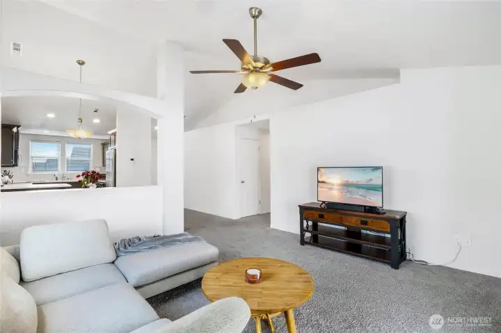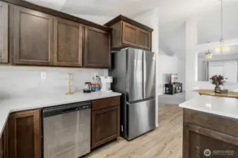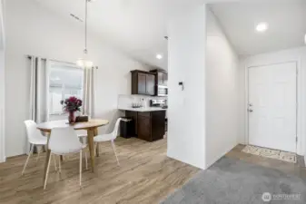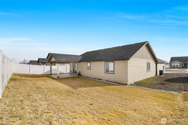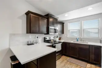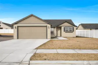 Better than new and move-in ready, this beautifully upgraded three-year-old home offers comfort, style, and efficiency. The popular Clearwater floor plan features 1,244 square feet of thoughtfully designed living space, plus a 4-foot garage extension and a covered back patio for year-round enjoyment.The modern kitchen is a standout with quartz countertops, rich dark cabinetry, stainless steel appliances, and a full tile backsplash—perfect for both everyday living and entertaining. The open-concept layout is light and bright with abundant windows and a vaulted ceiling, creating seamless flow between the kitchen and living room.Step outside to a fully landscaped yard with underground sprinklers and decorative curbing, ideal for low-maintenance outdoor living. Don’t miss this opportunity to own a like-new home with premium upgrades—schedule your private showing today!