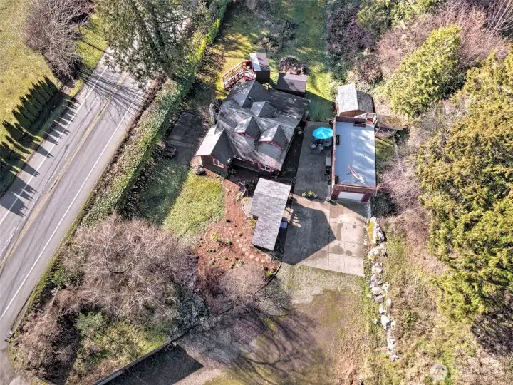 Discover a rare 1-acre opportunity in the storybook waterfront town of Allyn—a setting where charm, character, and Northwest beauty come together. This enchanting Hansel and Gretel style cabin is more than a home; it’s an experience, offering warmth, whimsy, and unforgettable craftsmanship throughout.Step inside to a welcoming brick hearth and custom woodwork—the heart of the cabin—and feel the cozy ambiance that defines this one-of-a-kind retreat. The kitchen features updated cabinets, while the main level offers two uniquely styled bedrooms: one wrapped in tongue and groove paneling with hidden cubbies,the other with its own magical personality. Upstairs, a large bedroom with wood paneling,vaulted tongue and groove ceilings and built in bed creates the perfect year-round getaway space. dedicated mudroom with washer and dryer keeps life organized and easy.Outdoor living is just as special with plenty of garden room, 3 RV Power Hookups, spacious parking and partially fenced; Watch the fireworks from a fun treehouse or the rooftop deck atop the single bay garage, both with view of North Bay/Case Inlet, and a true log style outbuilding that adds rustic charm and utility. Adventure awaits right outside your door—kayak park across the street, Allyn Waterfront Park within walking distance, plus local shops, and coffee spots just moments away.This is a property that captures the imagination and invites you to slow down, breathe deeply, and savor the magic of the Pacific Northwest.