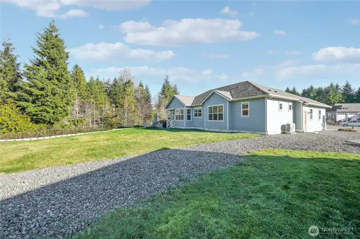 Fall in love with this nearly new rambler on over half an acre in a quiet cul-de-sac. Light and bright, the home features white cabinetry, quartz countertops, stainless appliances and a large kitchen island with seating for four, plus both formal dining area and a breakfast nook. The inviting living area includes a cozy gas fireplace. The primary suite offers a double vanity and newly upgraded tile shower, while a bonus room works perfectly as an office or possible third bedroom. Enjoy a flat, grassy backyard ideal for play or pets, along with access to miles of scenic trails. Lots this size are rarity in this neighborhood. HOA dues include South Bay Club membership with an indoor pool, fitness center, tennis courts, craft room, and more.
