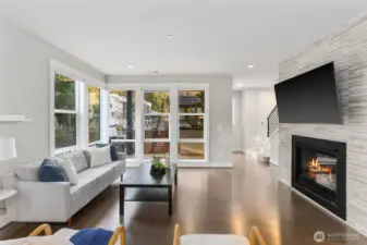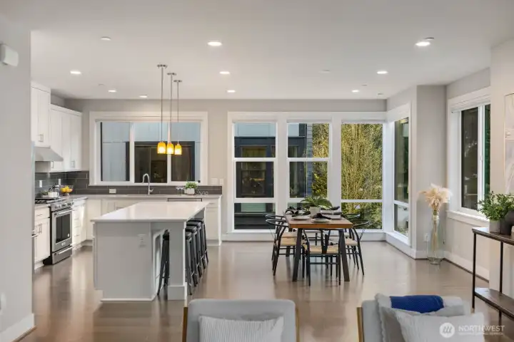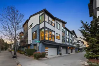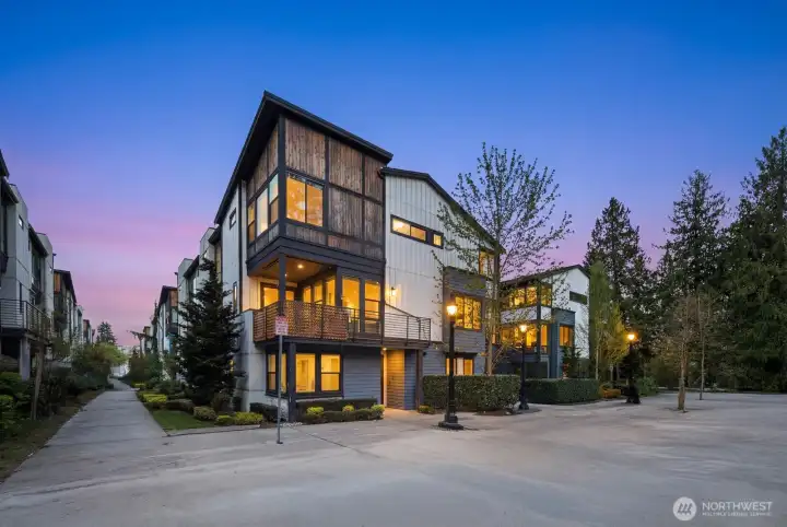 Elevated living in the heart of Downtown Bothell at sought-after Dawson Square. This light-filled corner townhome offers a spacious 4-bedroom, 3.25-bath layout with an open-concept design, 9’ ceilings, and upscale modern finishes throughout. The chef’s kitchen features an oversized island, quartz surfaces, stainless appliances, and generous storage—perfect for entertaining. The great room is anchored by a contemporary gas fireplace and flows seamlessly to a covered balcony for year-round indoor-outdoor living. Flexible lower-level suite ideal for guests, home office, or multi-generational living. Luxe primary retreat with walk-in closet and spa-inspired bath. Attached 2-car garage. Enjoy a walkable lifestyle just steps to top-rated restaurants, coffee shops, parks, trails, and the Sammamish River. Minutes to UW Bothell, Woodinville wine country, Canyon Park, and easy access to I-405, SR-522, Bellevue, and Seattle.