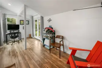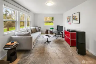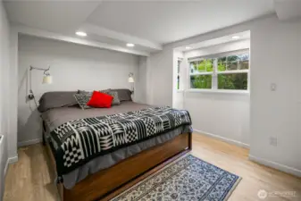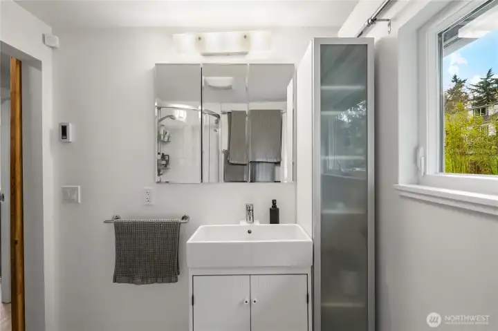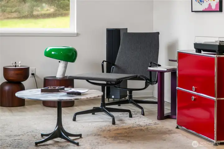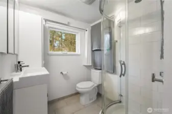 Modern style meets effortless living on a spacious private view lot that offers the perfect balance of tranquility and connection. Tucked just up the hill, this peaceful retreat is only a quick jaunt to the north end ferry—making downtown Seattle or West Seattle an easy commute. Inside, you'll find two generously sized bedrooms, a beautifully remodeled kitchen and bathrooms, and thoughtfully designed smart storage throughout. The fully automatic garage includes electric vehicle charging capability, while outside a striking lofted tower offers endless possibilities—an inspiring office with a view, guest suite, or creative retreat, complete with a downstairs studio. The large, level, fully fenced yard is perfect for lawn games, entertaining, or letting the dog run free. Green thumbs will appreciate the charming potting shed and ample gardening space, or simply enjoy the existing low-maintenance yet lush landscaping. Front and back decks create ideal spaces for grilling, gathering, and dining al fresco. With brand-new plumbing and wiring plus high-speed internet connectivity for even the most discerning technologist, this home blends modern convenience with relaxed living. Completely move-in ready, this is a truly special place to call home.