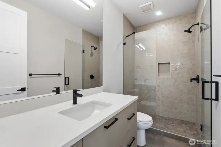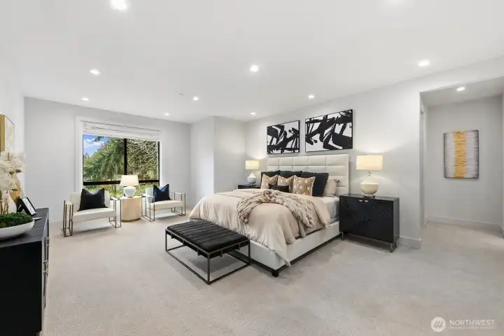 Welcome to modern luxury living in Bellevue's highly sought-after Lake Hills community! This thoughtfully designed 5-bedroom, 4-bathroom home isn't just impressive; it's easy to live in. The 2-story great room makes an immediate statement, filling the home with abundant light and a sense of space, while the chef's kitchen, outfitted with top-of-the-line Thermador Wi-Fi-enabled appliances, anchors everyday living and effortless entertaining. Spa-inspired bathrooms offer a daily escape, and the covered patio extends your living space year-round, perfect for quiet mornings or hosting friends. Add in a prime location, just steps to Lake Hills Community Park, and Phantom Lake Elementary School, which is part of the top-ranked Bellevue schools, and you have a home that truly delivers on lifestyle, comfort, and long-term value.
