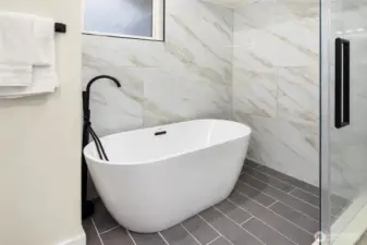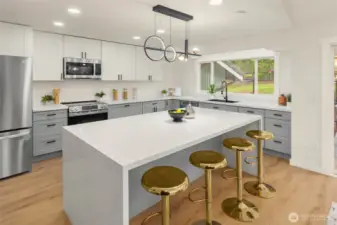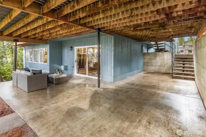 Timeless elegance meets modern sophistication in this fully remodeled home, where no surface has been left untouched. Like new and thoughtfully redesigned, the home showcases upscale, designer finishes throughout, accented by striking wood beams and expansive windows that anchor the light-filled main level. The open layout welcomes you into a bright, airy living space, seamlessly flowing into the heart of the home - the beautifully appointed kitchen, featuring a large gathering island, exquisite tilework and surfaces, and all-new appliances. Step outside to the oversized wraparound deck, ideal for entertaining or quiet moments of relaxation. The main-level primary suite offers exceptional convenience and privacy, complete with a luxurious en-suite bath, walk-in closet, and its own private balcony. The lower level provides 3 additional bedrooms, each with generous closet space, a full hall bath, a large utility room, and a versatile secondary living area with fireplace and patio access - perfect for guests, media, or work-from-home needs. Thoughtful storage is found throughout, along with additional/RV parking, fresh landscaping, and new exterior paint. All of this is set in a highly convenient location with easy freeway access, blending refined living with everyday ease. Welcome home!