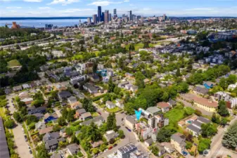 Just 3 blocks to light rail (opening March 28th, with service to Mercer Island, Bellevue, and Redmond!), this 4-Star BuiltGreen, turnkey home is convenience exemplified. Expansive, south-facing windows & 9' ceilings for outstanding natural light. Gleaming hardwoods. Fresh paint and new carpet. Remodeled kitchen w/quartz counters, stainless appliances, including gas range, & shaker cabinets. Uncommonly large bedrooms. Primary suite encompasses entire 3rd floor & features dual double closets & expansive, 5-piece bath w/rainshower head & soaking tub. Bask in panoramic territorial views on TWIN rooftop decks. Ultra-efficient mini-splits for heat & A/C. Dedicated parking. No HOA/dues. 2 blocks from highly-rated Marshall Elementary. Within 1 mile of 12 city parks! Easy access to transit, shopping, dining, arts, entertainment, and everything the city has to offer!