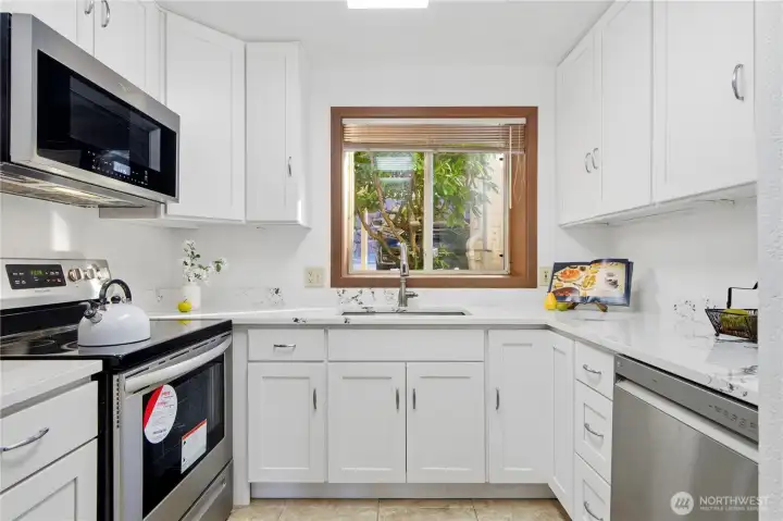 Move-in ready! Located in a peaceful, well-established Bellevue community with a welcoming neighborhood feel, this home is conveniently close to shopping, dining, and everyday essentials—including Factoria Mall, T&T Supermarket, QFC, and nearby neighborhood parks. Easy access to major arterials and highways makes commuting throughout Bellevue, the Eastside, and Seattle efficient. Situated in the desirable Woodridge Elementary, Tyee Middle, and Newport High School feeder pattern. Extensive updates completed in late 2024: the kitchen was fully remodeled with updated cabinetry and countertops, plus refreshed appliances including a range hood with built-in microwave, electric cooktop and oven, garbage disposal, and washer/dryer. Flooring was updated in late 2024 with tile in the kitchen and LVP flooring in the living room. Water heater replaced in 2024. The HOA provides valuable maintenance coverage including dryer vent maintenance, roof maintenance (roof replaced in 2025), and fireplace/chimney cleaning—offering added convenience and peace of mind. HOA dues also cover Water, Sewer, and Garbage. Plenty of parking available throughout the community.