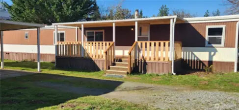 Discover this newly refreshed home, ready for its next owner. A brand-new covered front porch welcomes you - perfect for enjoying year-round outdoor living. Inside, the spacious kitchen offers abundant cabinetry for effortless storage and flows seamlessly into the bright, open dining area, framed by large windows that fill the space with natural light. The primary bedroom is comfortably sized, complemented by a second bedroom ideal for guests, a hobby room, or a dedicated home office. Recent updates include new LVP flooring throughout, new closet doors, energy-efficient double-pane windows, and freshly retextured ceilings. Stay cozy in cooler months with the warm ambiance of the wood stove, and enjoy summer comfort with the newly installed wall A/C unit. All appliances are included for added convenience. Outside, the covered carport provides protected parking, and the spacious shed offers an excellent workshop space or extra storage for gardening tools and equipment. Situated in a quiet, friendly 55+ community, this location offers easy access to parks, shopping, healthcare, and more. Park-approved pets are welcome, up to two cats or dogs, 25 lbs. max. Space rent remains affordable, with metered water, septic, and garbage billed to residents as a pass-thru charge through the park. Come see why this comfortable, move-in-ready home is the perfect place to start your next chapter.