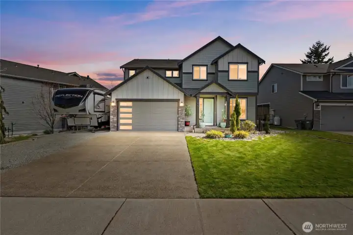 FULL Mountain View? CHECK!! From the moment you drive up, Prepare to be swooning. 50 AMP RV parking FULL hookups, NO HOA! Immediately witness the Next level feeling this home offers. All the work is already done. Smart open-concept layout that instantly makes you feel at home. The seamless flow between the kitchen, dining, & living spaces creates the perfect setting for everyday living & effortless entertaining. The kitchen is a true standout, featuring a custom walk-in pantry w/room for everything, from small appliances to Costco hauls. Massive Eat-in, stunning Granite island, even your Gas cooktop too. Keep your counters clean & your life organized. Oversized Primary is sure to impress. 5 piece bath & that walk-in closet too! Love to host? Indoor-outdoor fireplaces and Private Covered spaces extend your living space year-round, creating a cozy, inviting atmosphere inside & out. The jaw dropping backyard w/custom featured fencing & stamped concrete is ready for summer BBQs, morning coffee, and don't forget the Mt.View sunsets in the Hot TUB! Need flexibility? The bonus space w/closet is perfect for 5th bed, media room, gym, or guest retreat. Truly Better than new & move-in ready, every detail has been thoughtfully upgraded so you can skip the projects & start enjoying. All this just minutes from everything in town, shopping, dining, parks, & schools.This isn’t just a house, it’s the lifestyle upgrade you’ve been waiting for. Relax you are home! Come Tour it today!