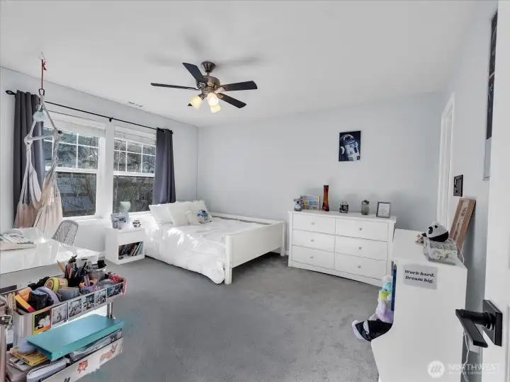 Picture coming home to a place that simply fits the way you live. From the cozy front porch with Cascade Mountain views to the bright, open spaces inside, this home was designed for connection, comfort, and ease. The main floor welcomes you with warm wood floors and an open layout where everyday moments and special gatherings naturally come together. The kitchen complete with an eat-in space and generous pantry flows effortlessly to a brand-new deck and a low-maintenance backyard with easy-care turf, creating the perfect setting for outdoor barbecues, play, or quiet evenings under the sky. A comfortable living room pre-wired with surround sound, and a dining room made for gathering. Upstairs, all three bedrooms feature walk-in closets, the primary bedroom offers a 5 piece en-suite for a peaceful retreat at the end of the day, dedicated den/flex space, with a spacious bonus room providing flexibility for work, play, or movie nights. Main floor laundry, and thoughtful updates throughout including a new roof, new furnace and A/C, fresh interior paint, new fence, new deck and an EV charging station deliver a truly turnkey experience. Set on a level lot in a quiet dead-end cul-de-sac, this Quadrant Home is located within top-rated Snoqualmie schools. Walking distance to Fisher Creek Park, the Snoqualmie Ridge Trail, and easy access to I-90. This is more than a home, it’s a place to settle in, gather often, and enjoy the rhythm of everyday life.