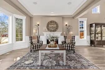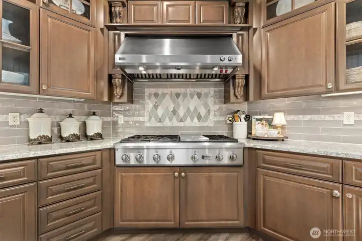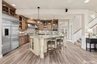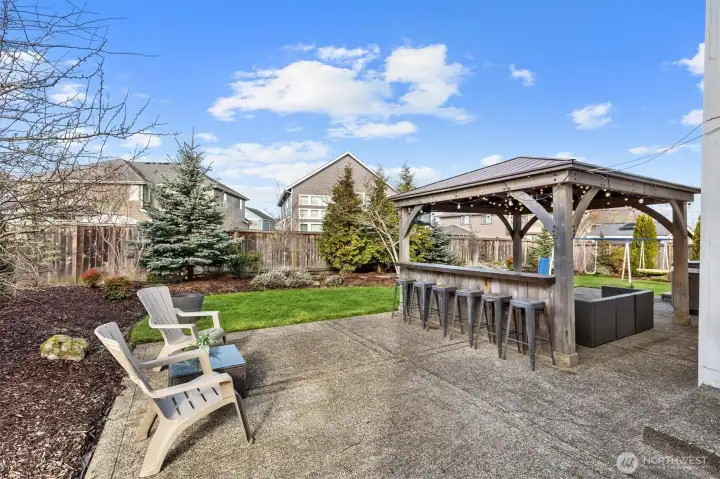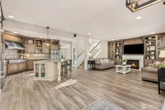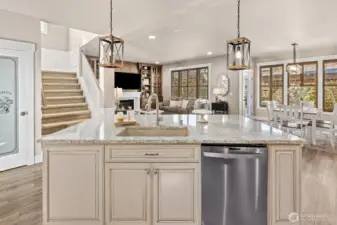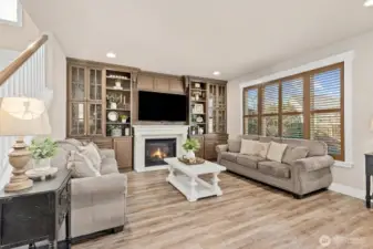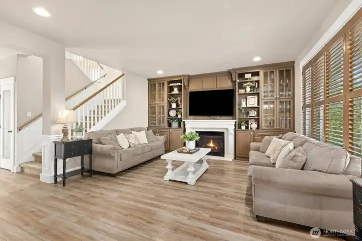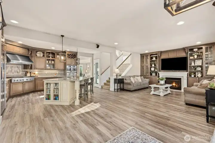 Welcome to elevated living in the highly sought-after Sunrise community, where thoughtful design meets everyday luxury. This beautifully updated 4-bdrm residence offers a rare blend of elegant entertaining spaces & comfortable modern living. At the heart of the home, a stunning chef’s kitchen showcases new custom cabinetry with display features, wine storage, quartz countertops, designer tile backsplash, stainless steel apps, and a 6-burner gas cooktop with built-in grill. The oversized island, complete with beverage fridge and glass display cabinet, creates a natural gathering place for hosting and connection. Formal living and dining rooms with vaulted ceilings add sophistication, while the inviting family room features custom built-ins, a gas fireplace, and updated vinyl plank flooring throughout. Upstairs, a spacious bonus/media room provides flexible living, while the private primary retreat offers a built-in workspace, jetted soaking tub, and double-head shower for a spa-like experience. Three gas fireplaces throughout the home add warmth and ambiance. Outdoor living shines with a covered gazebo patio, bar seating, hot tub, and generous space for entertaining, gardening, playing, or relaxing. A rare 4-car tandem garage offers a finished flexible use space for hobbies, fitness, or storage. Ideally located near Sunrise park, multiple playgrounds, tennis courts, clubhouse amenities, schools, shopping, & dining, with peekaboo Mt. Rainier views completing the experience!
