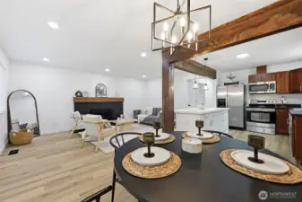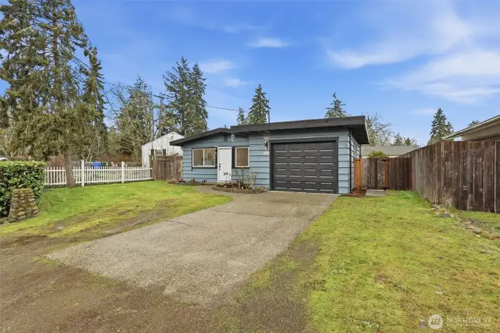 Charming and move-in ready 3BR/1BA rambler in a convenient Lakewood location. Just minutes from shopping, JBLM, and major freeways, this home offers both comfort and accessibility. Inside, enjoy an updated open-concept kitchen with modern finishes, new flooring, and a beautifully refreshed bathroom. The cozy fireplace adds warmth and character to the living space. Outside, the fully fenced yard provides privacy and room to relax, garden, or entertain, plus a spacious shed for extra storage. An attached garage adds everyday convenience. A turnkey home in a prime location—ready for its next owner.