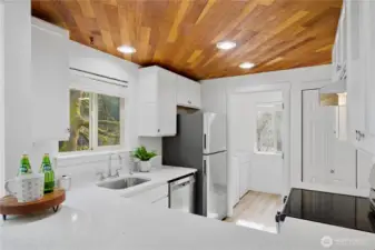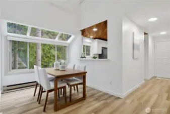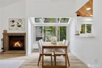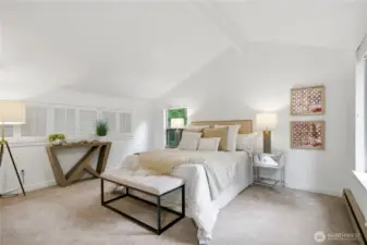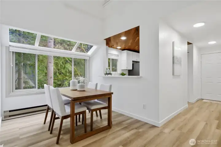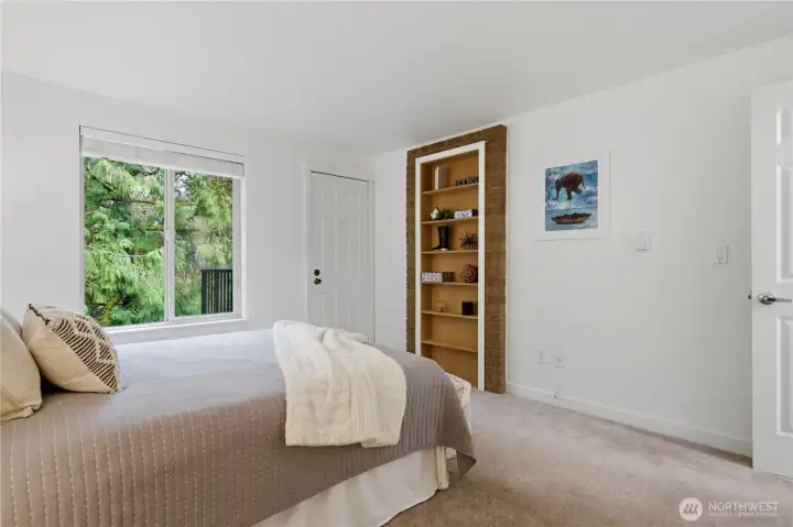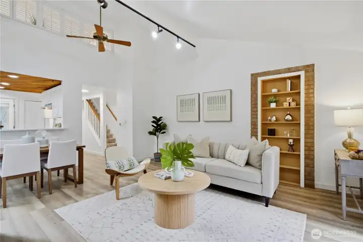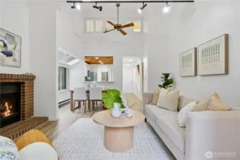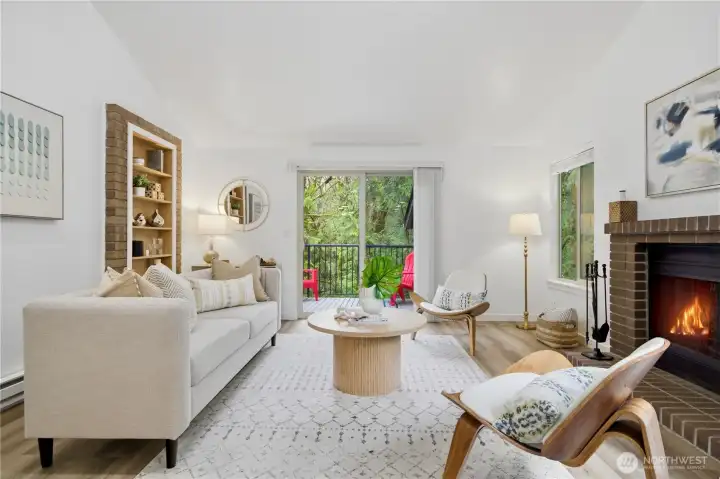 Experience the perfect blend of comfort and convenience in this stunning 3-bedroom, 2-bathroom condo nestled in the serene Cedar Ridge community. Perched on the top floor with a tranquil, park-like setting, this home is a true "commuter's heaven," offering effortless access to Bellevue, the Microsoft campus, and the vibrant downtown hubs of both Kirkland and Redmond. The main level features an open-concept layout with soaring vaulted ceilings and oversized windows. The modern kitchen flows seamlessly into the dining and living rooms, where a timeless real-wood fireplace adds warmth and charm. Step right out from your living room to your spacious patio to expand your living area—perfect for hosting guests or firing up the grill. Two spacious bedrooms share a full bath on the main floor. Upstairs, the loft-style primary suite showcases vaulted ceilings, a walk-in closet, and a 5-piece bathroom. Enjoy ample storage space throughout, plus a generous storage room by the balcony. The home includes one covered carport space, a community EV charging station, and plenty of guest parking. All this, plus the acclaimed Lake Washington School District! No rental cap!