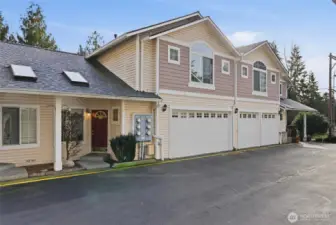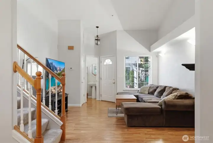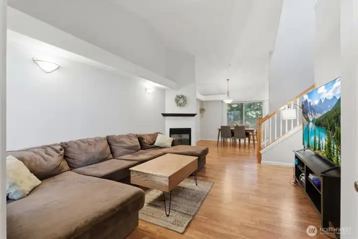 Positioned in one of the most connected pockets of Lynnwood, this home delivers the space you want and the convenience you need. Soaring vaulted ceilings create a dramatic first impression the moment you step inside, filling the home with light and an immediate sense of openness. Durable laminate flooring flows seamlessly throughout the main level, offering both style and functionality. The kitchen offers abundant cabinet storage and a practical layout designed for efficiency. Just beyond, a sliding glass door opens to a large, private covered deck — an extension of your living space that allows for year-round entertaining, outdoor dining, or simply relaxing in your own secluded setting. A rare and highly sought-after feature, this home includes a private 2-car garage with generous storage capacity — a true standout in this market. Upstairs, three bedrooms provide flexibility and comfort. The spacious primary suite is the highlight, featuring vaulted ceilings, a walk-in closet, and a retreat-like feel that separates it from the rest. Location is a true advantage — walking distance to the Lynnwood light rail station for seamless commuting, and just minutes from Edmonds College and shopping, dining, and entertainment at Alderwood Mall. Well run HOA with low dues. Professionally inspected with report.