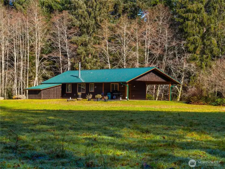 Outdoorsman’s paradise on approximately 12 acres with 1,900’ of Bogachiel River frontage. Gated for privacy, this rare retreat offers open pasture land and endless opportunity. A 1970s survey reflects 12 acres, and the seller has been told by the county the property may be subdividable (buyer to verify). Built in 2015, the thoughtfully designed cabin features concrete floors, a durable metal roof, a heat pump, granite countertops, stainless steel appliances, and full handicap accessibility. Poured concrete and asphalt provide easy access and maneuverability. Live comfortably in the cabin or build your dream home overlooking the river. Generator, propane tank, and beehive are included in the sale. The land is rich with established plantings including apples, pears, plums, almonds, hazelnuts, chestnuts, fig, elderberries, multiple varieties of blackberries and raspberries, blueberries, marionberries, loganberries, gooseberries, honeyberries, Pinot Noir, Muscadine and table grapes, asparagus and more. Wildlife is abundant—deer, elk, bear, cougar, geese and ducks—with trout, salmon and steelhead in the river. A true Pacific Northwest escape offering privacy, beauty, and possibility