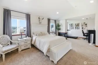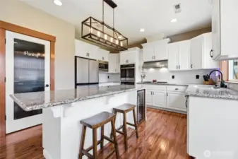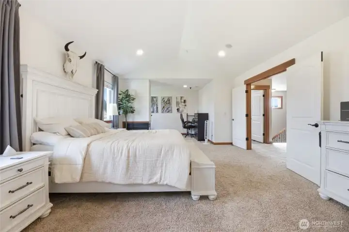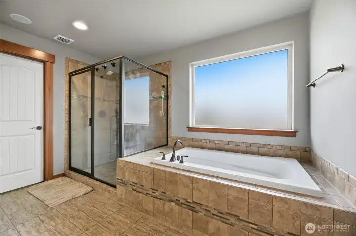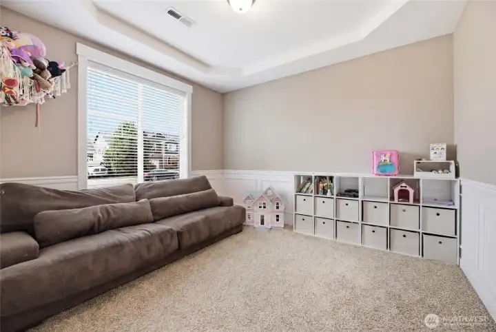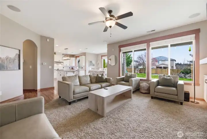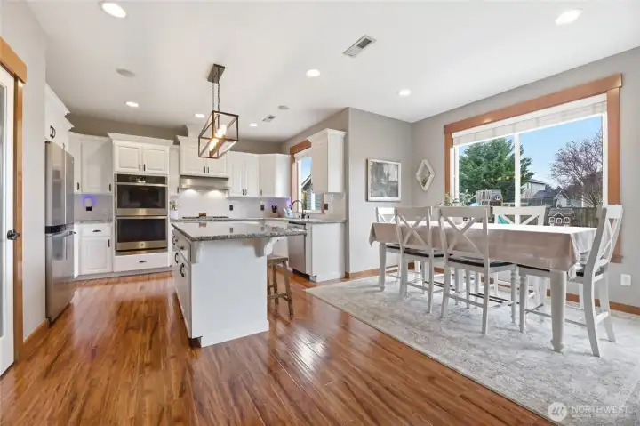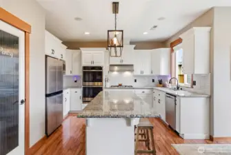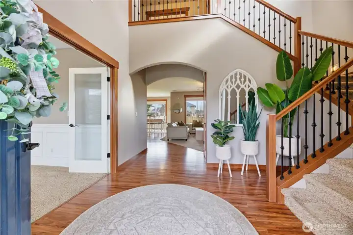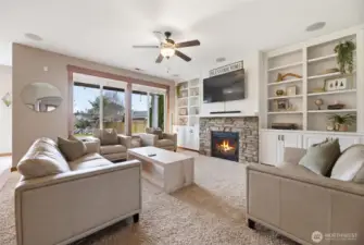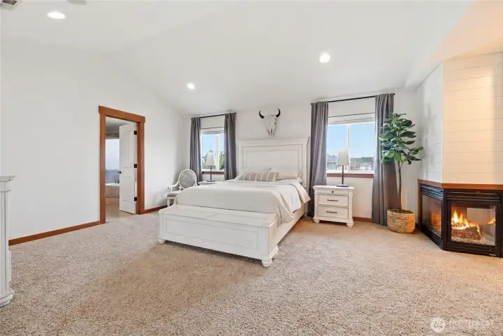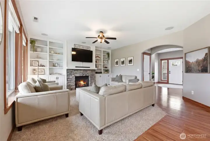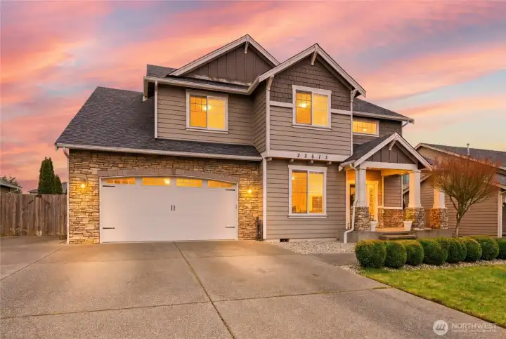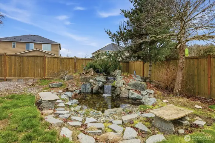 Beautiful, spacious 4-bedroom home with an office/den on main level located in the gated community of Grand Firs. Walk into a spacious entryway with 9ft ceilings throughout the house. Open concept kitchen with eating area overlooking the living room area with fireplace. Kitchen has a large island with a strategic layout with plenty of counter space and walk in pantry. All bedrooms and laundry room are on the upper floor. Primary bedroom has a fireplace with added bonus area. 2 car attached tandem garage. Fully fenced back yard with patio, storage she, sprinkler system, waterfall and pond. RV parking with 240-volt power. 3 parks are in the community with one park close by.