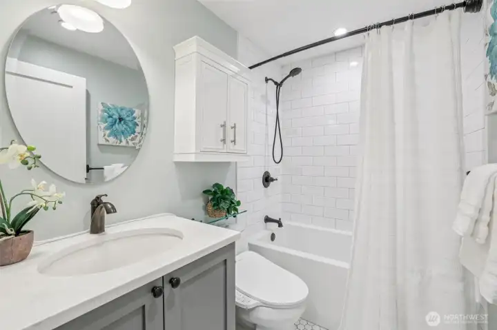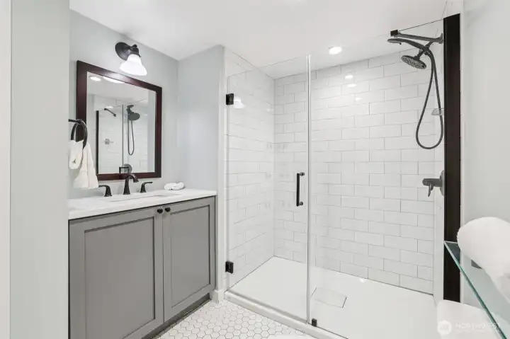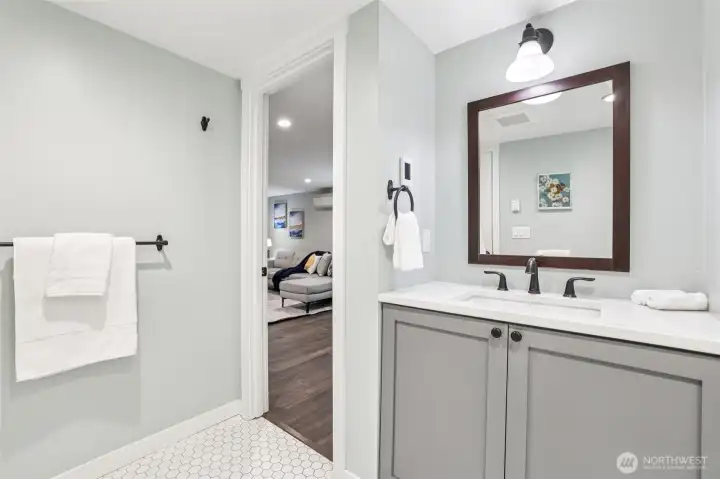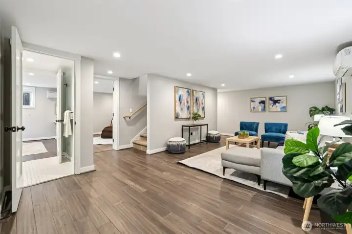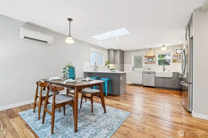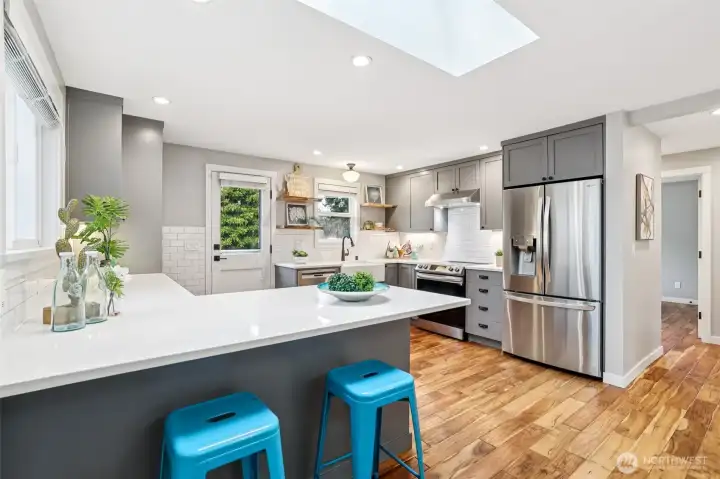Beautifully redesigned 1958 classic home refreshed and remodeled in 2017 and 2022, offers modern comforts with timeless appeal. Spacious open floor plan features a showcase kitchen with ample cabinets and workspace, quartz countertops, SS appliances, and subway tiles. Upstairs also features two large bedrooms with nice closet space. Downstairs find your huge primary suite with walk in closet and expansive family room-perfect for relaxing or entertaining.Step outside to the large NR3 zoned backyard with plenty of room to garden, play, wrestle with your pups or explore the potential for adding DADU(s)(buyer to verify to satisfaction). Plenty of offstreet parking via alley access for multiple cars/RV/boat space. Large newer Tuff Shed located via alley access as well. Nestled on a quiet street, this home offers both privacy and convenience to all things West Seattle, DT, Freeways, airport, Westwood Village, restuarants, parks, and beach. A fantastic opportunity for those seeking space, versatility and/or development potential with move in ready updates. New roof 2022, Solar Panels 2022, new electrical 2017, new plumbing 2017, new siding 2017, air conditioning and radiant bathroom floors.