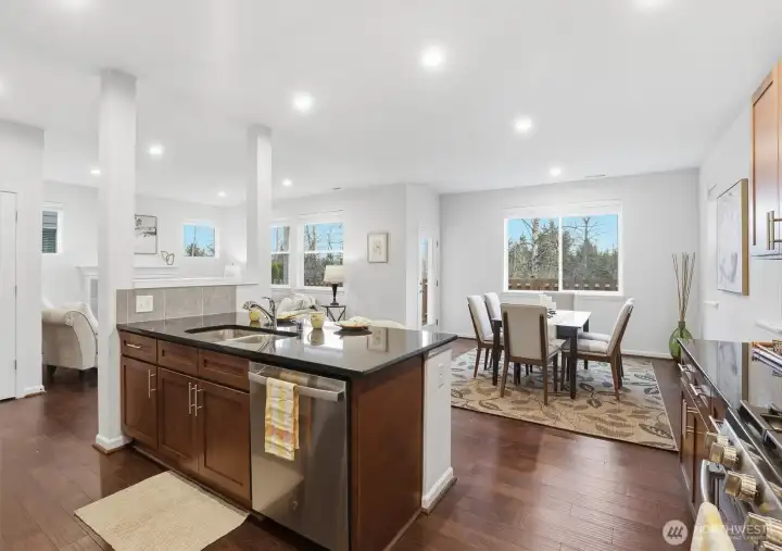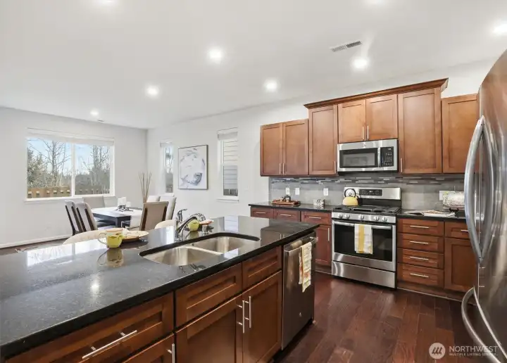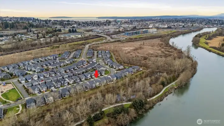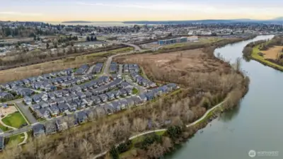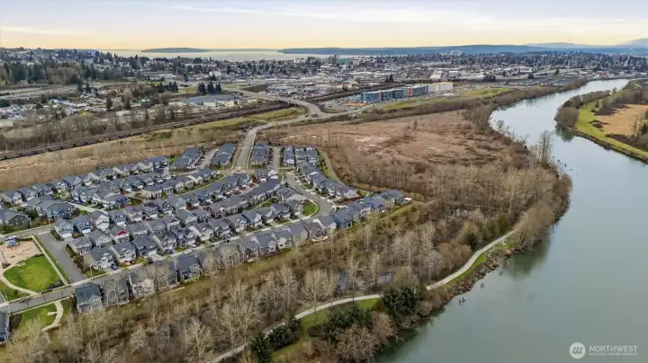 The desirable Tolt Floor Plan offers 3 bdrm, 2.5 bath, and a large bonus room that could be used as a 4th bdrm. Hardwoods on the main level, slab granite, tile, gas range, SS appliances. Fridge, clothes washer and dryer included in sale. This home is one of the few in the community that has a view of the Snohomish River. It also has no homes behind providing privacy and territorial views. Community also offers parks and trails along the Snohomish River. The home has received regular, fastidious maintenance and feels like a new home.