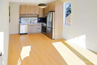 Stunning new construction in Seattle’s Hillman City featuring 2 bedrooms, 2 baths, and over 1100 sq ft of refined modern living with an EV-ready garage. The covered garage, private driveway, and fully fenced front yard offer rare privacy and convenience in the city. Ideally positioned near Columbia City and Lake Washington, this home blends neighborhood charm with seamless urban access. Light-filled open living spaces showcase sleek designer finishes and expansive windows framing sweeping territorial views to the north, south, and west—including the City scape, Cascades and beautiful Mt. Rainier. Two spacious bedrooms and an office space provide flexibility for work-from-home, and modern homeowner living. The landscaped, fenced yard creates a peaceful retreat for entertaining or relaxing. Exceptional functionality on a quiet, walkable street.