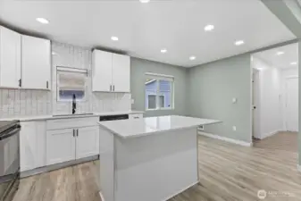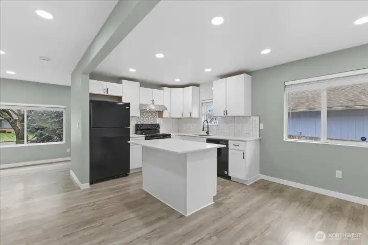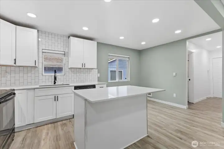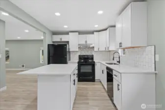 Move right into this light-filled rambler featuring high-end finishes from top to bottom. Interior: Open kitchen with quartz counters & island, custom cabinets, and sleek tile work. Designer bath with soaking tub. Durable LVP flooring and lush bedroom carpets. Systems: 2021 Roof, updated windows, and cozy electric fireplace with a tiled feature wall. Exterior: Large, private corner lot with full fencing and mature landscaping. Bonus: Oversized 2-car detached shop/garage + ample RV parking. An incredible opportunity to own a modern, move-in-ready home in a prime location!