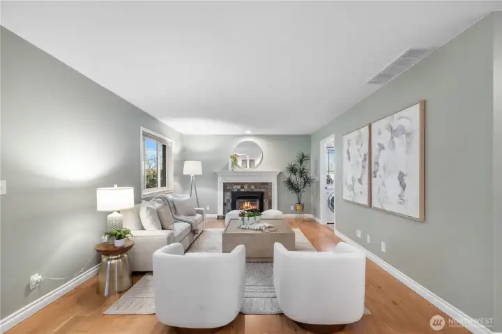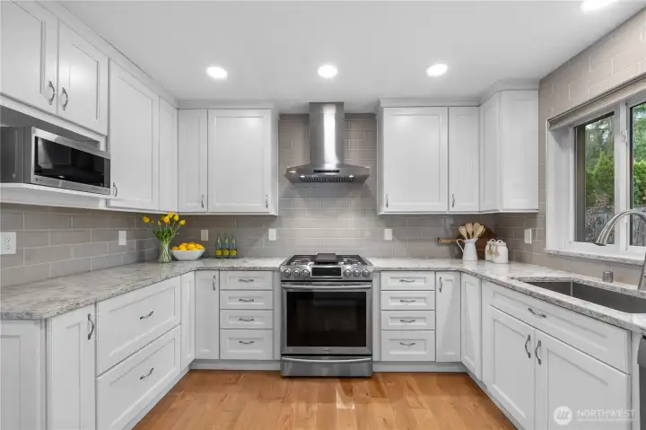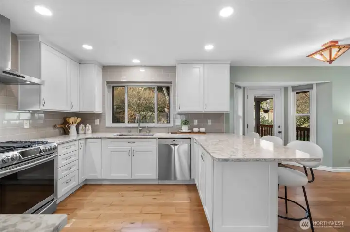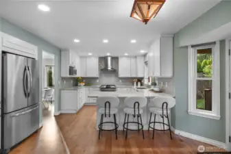 Welcome to your dream home in the sought-after Cherry Hill Farm neighborhood, where availability is rare! This stunning east-facing residence blends modern upgrades with timeless charm. Upon entering, you’ll be captivated by elegant cherry hardwood floors, plush new carpet, and fresh interior paint that flow throughout the main living areas. The heart of this home is the beautifully remodeled kitchen, featuring crisp white cabinets, quartz countertops, and a striking tile backsplash, all complemented by SS appliances. The open-concept design allows for seamless interaction, with the kitchen overlooking the great room and its inviting gas fireplace—perfect for cozy evenings. A long list of updates includes solar, heat pump, A/C, windows, roof and complete bathroom and kitchen remodels, ensuring modern comfort. Each room offers privacy, making it an ideal retreat for guests. Step outside to your private oasis, featuring a spacious covered deck that overlooks a fenced backyard, ideal for relaxing or hosting summer BBQs. The garden areas boast apple and cherry trees, along with blueberries, raspberries and grapes. Just steps away enjoy Brickyard Road Park with walking trails and the fabulous pickleball courts! Award winning Northshore schools within walking distance. Minutes to Evergreen Hospital, Woodinville wine district, restaurants, shopping and multiple transit options. Don’t miss the chance to call Cherry Hill Farm your home!