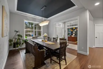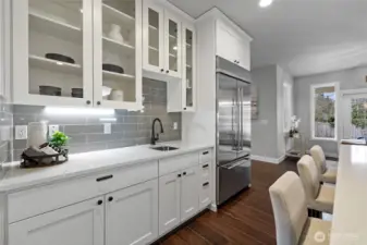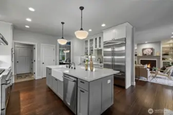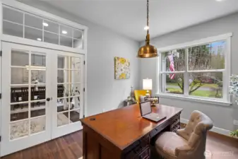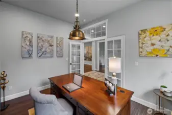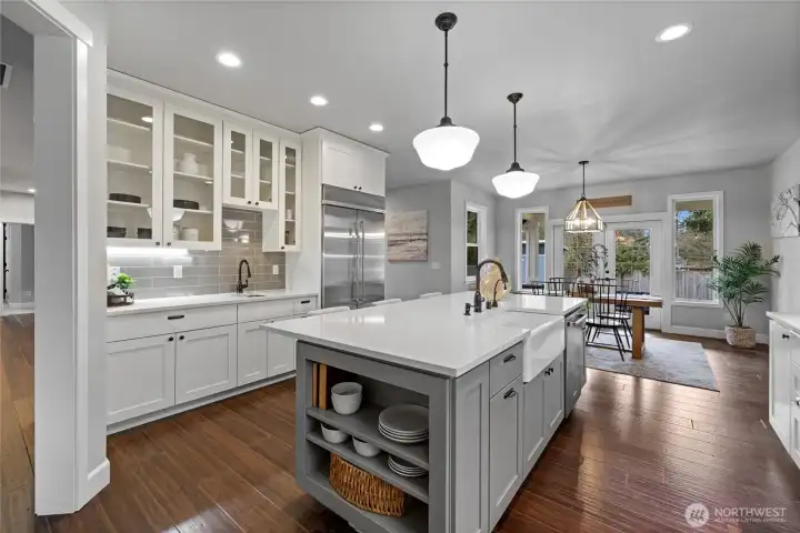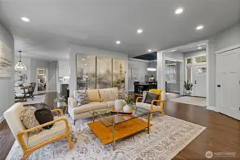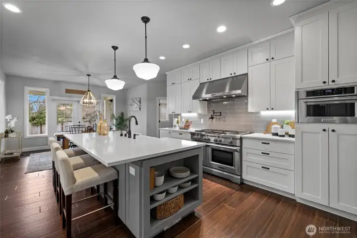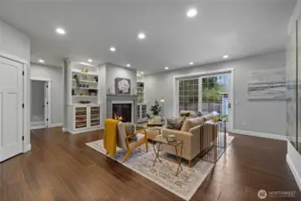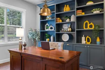 Welcome to this luxurious custom build 3-bedroom, 2.5-bathroom single story residence on 0.43-acre lot. The expansive open-concept main level is flooded with natural light through large windows and enhanced by recessed ceiling lights and tray ceilings. Impeccable built-in cabinets provide elegant storage and a polished focal point in the living area. The gourmet chef’s kitchen is a masterpiece of modern luxury, featuring crisp white shaker cabinetry, premium quartz countertops, a commanding oversized range stove, and a deep undermount sink. Under-cabinet lighting accentuates the sophisticated gray subway tile backsplash, while a generous walk-in pantry delivers additional storage. The adjacent dining space flows effortlessly to the outdoor covered patio via French doors. Home also features an elegant formal dining space with recessed ceiling and stunning chandelier. The primary suite is a private haven with elegant damask-patterned wallpaper complemented by an ensuite bathroom boasting dual vanities with speckled quartz counters, sleek black fixtures, a spacious walk-in shower, and a jetted tub. Two additional large bedrooms share access to a full bathroom. A versatile 492 sq ft bonus room —perfect for a media lounge, fitness studio, or fourth bedroom. The dedicated office impresses with floor-to-ceiling built-in bookshelves and French doors. This generous oversized lot provides ample parking, complete with a full RV hookup. This resident is a rare find, do not miss this one.