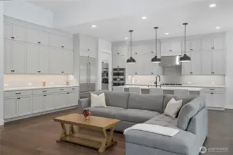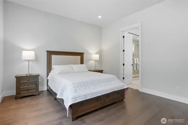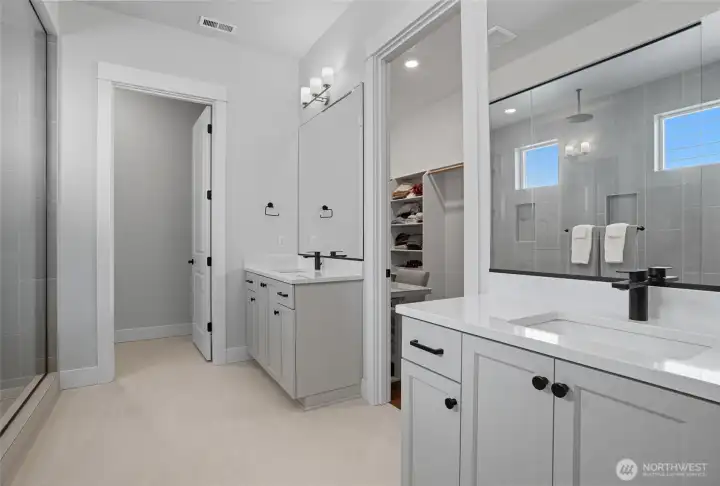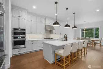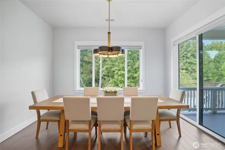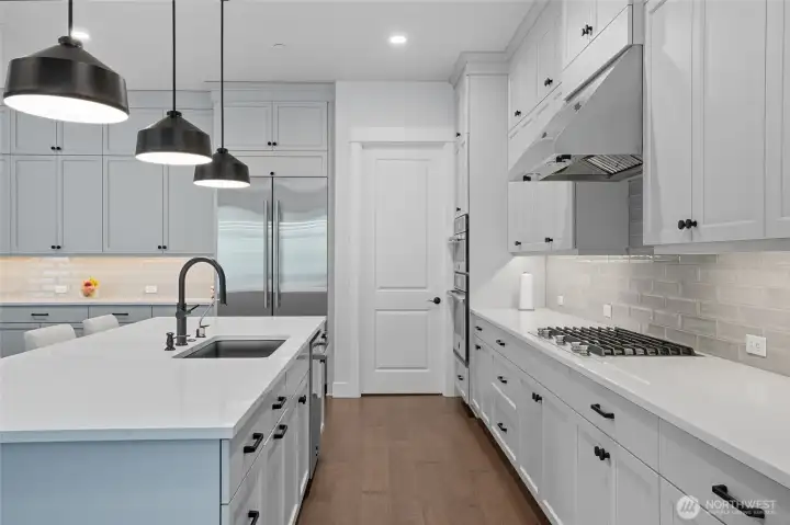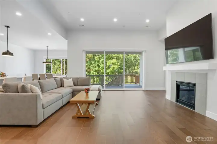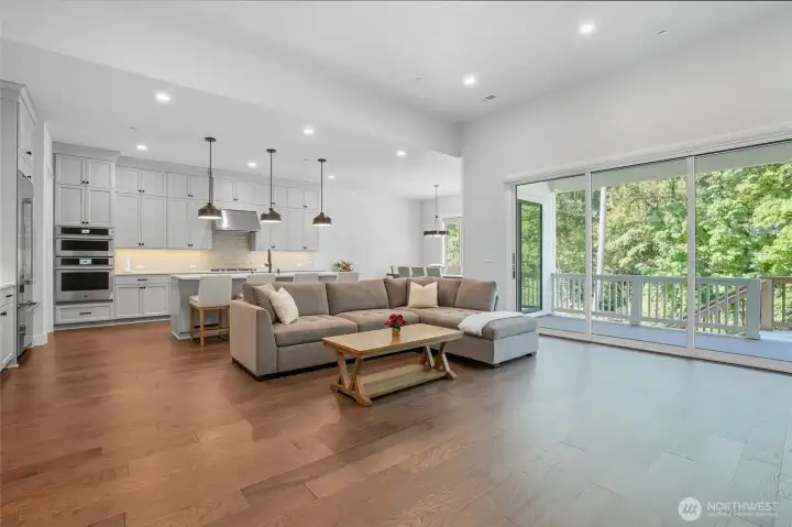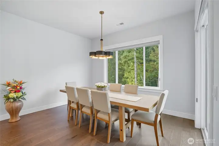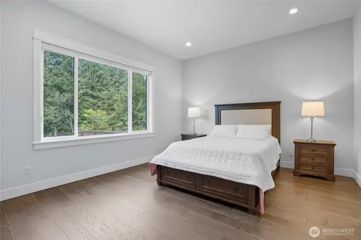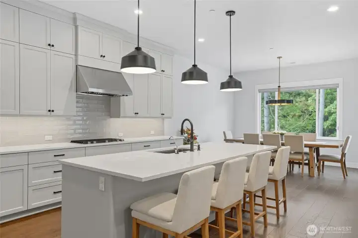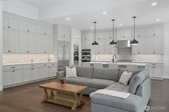 Welcome to this one level home in the new Lacamas Hills neighborhood! Luxury meets functionality in this stunning modern home with upgrades inside and out. Featuring 12’ and 10’ ceilings, quartz countertops throughout, engineered hardwood flooring, cabinetry, lighting, and fixtures, every detail has been elevated. The chef’s kitchen includes a sleek built in refrigerator, oversized island, stainless appliances, and full-height cabinetry, opening to a bright living area with floor-to-ceiling sliding doors and views of the private greenbelt. Retreat to the spacious primary suite with a walk-in closet and spa-like bathroom. Three full baths are beautifully finished, and the dedicated dining space overlooks forest views. Outdoor upgrades include a low maintenance turf yard, sprinklers front and back, raised garden beds, gas BBQ hookup, and a covered patio for year-round enjoyment. The 3-car garage provides ample storage space. All just minutes from Lacamas Lake, top-rated schools, shopping, and trails.