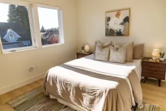 Stunning new construction in Seattle’s Hillman City featuring 4 bedrooms, 4 baths, and over 2,500 sq ft of refined modern living with a two-car EV-ready garage. A covered garage, private driveway, and fully fenced yard offer rare privacy and convenience in the city. Ideally positioned near Columbia City and Lake Washington, this home blends neighborhood charm with seamless urban access. Light-filled open living spaces showcase sleek designer finishes and expansive windows framing sweeping territorial views to the north, south, and west—including the Cascades and Mt. Rainier. Four spacious bedrooms provide flexibility for guests, work-from-home, or multi-gen living. The landscaped, fenced yard creates a peaceful retreat for entertaining or relaxing. Exceptional functionality on a quiet, walkable street.