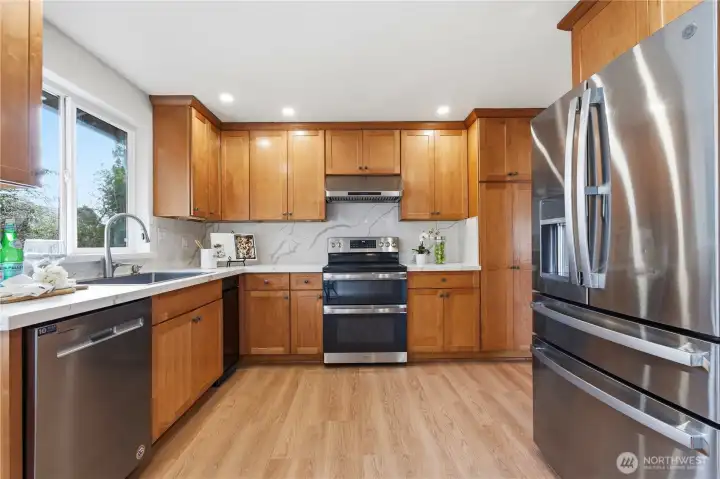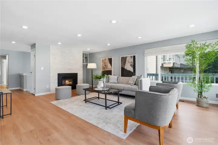Nestled on a quiet private lane in South Lake Sammamish, directly across from multimillion-dollar waterfront homes, this beautifully updated residence offers style, comfort, with a peek-a-boo lake view, and an unbeatable location. The light-filled living spaces feature abundant windows that bathe the home in natural light. Thoughtfully remodeled throughout, the home showcases fresh interior and exterior paint for a clean, modern look, brand-new luxury vinyl flooring, and all-new lighting for a bright, contemporary feel. A new roof provides long-term peace of mind. The kitchen shines with a newer quartz countertop and nearly new appliances, while all bathrooms have been tastefully remodeled in recent years. Step outside to enjoy the front deckâperfect for entertaining and extending your living space outdoors. The home also features a large two-car garage with an EV charger and extra storage. The flat driveway and cement-paved front yard provide ample parking, including space for a boat. The backyard offers a lovely grassy lawn for relaxation or play. Ideally located just 10 minutes from Bellevue and Redmond, and within walking distance to multiple parks, including beach access and tennis/pickleball courts. Located in the award-winning Issaquah School District. Pre-inspected for your confidence. Welcome home.
